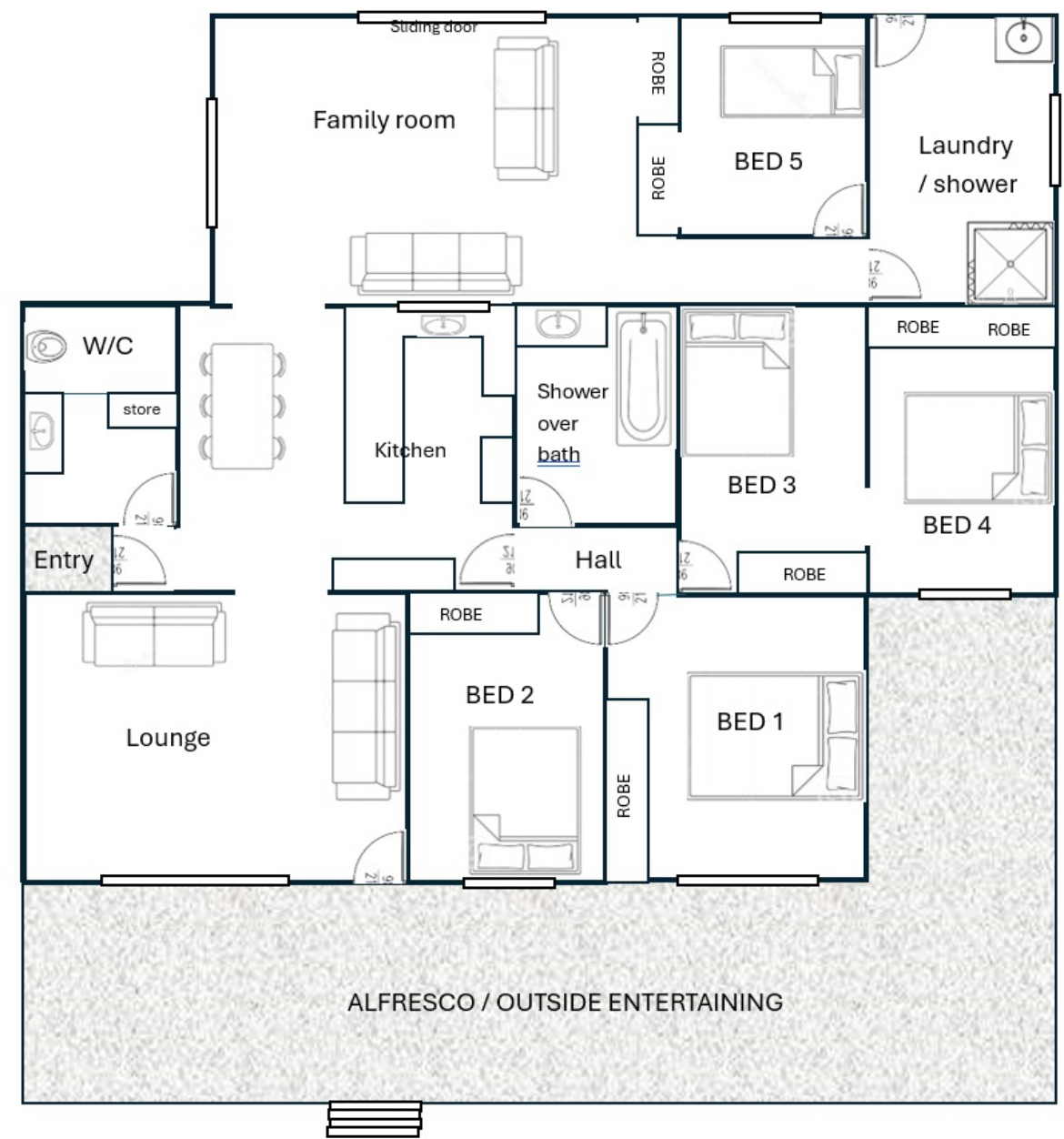 School bus at the Trungley Hall cross roads. Mail is delivered to the gate, septic system (no town water or sewerage). Organise to have a small skip bin collected monthly (no town garbage collection).