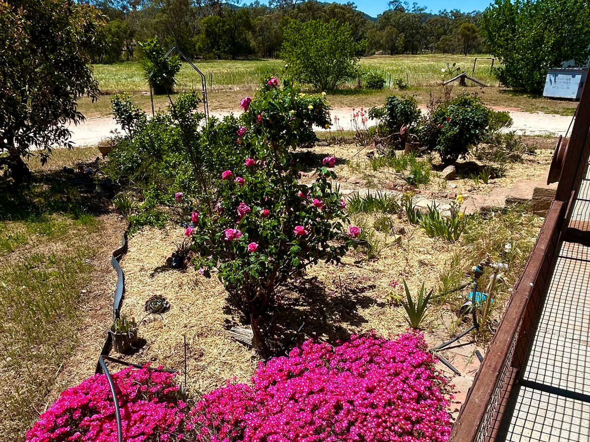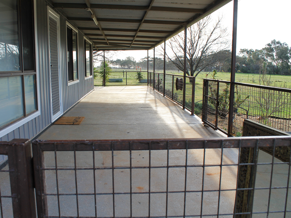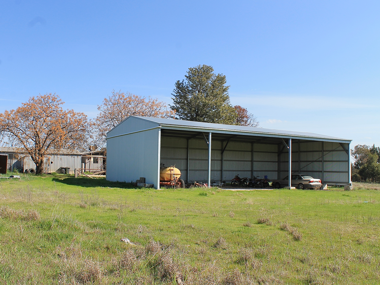 Three rainwater tanks, large 4 car garage with rubber mat flooring, workbench, power & lights; a 3m x 3m garden shed with concrete floor; and a large 20m x 9m machinery shed; plenty of space for the boat, caravan, trailer etc. There is also a dog yard & chook yard, mature peach tree & two small citrus trees.