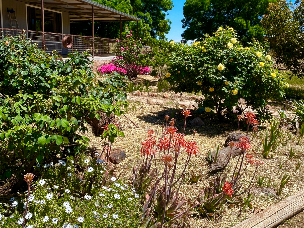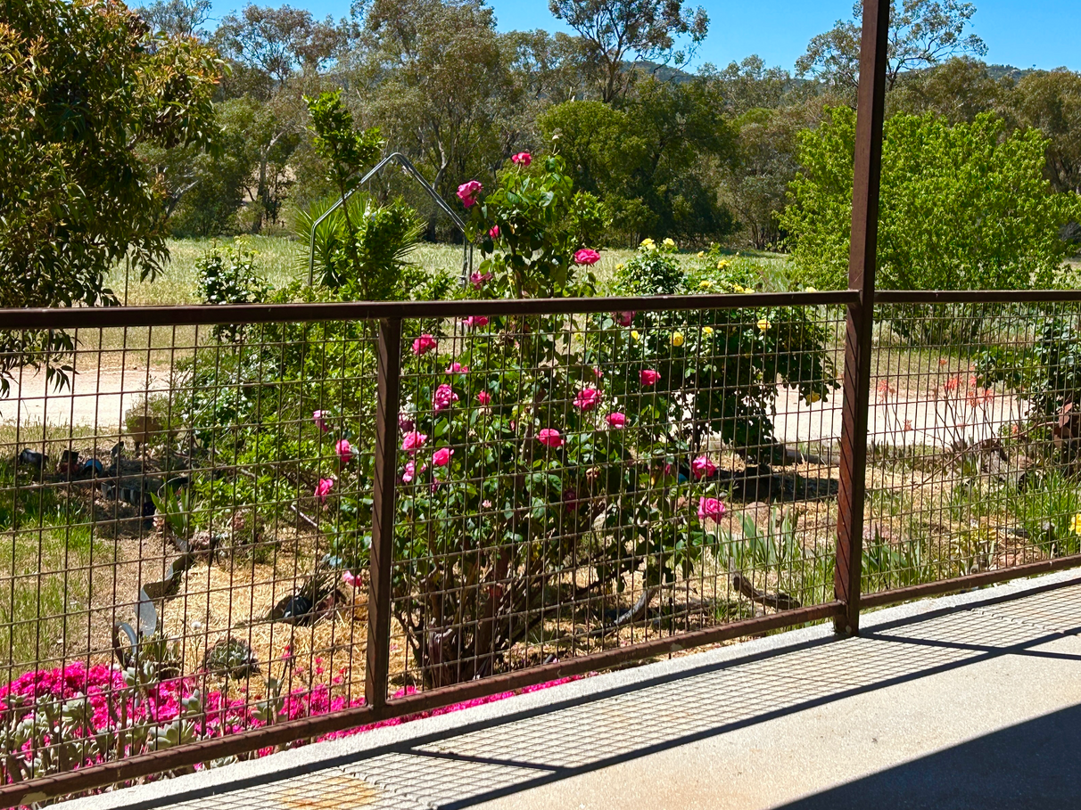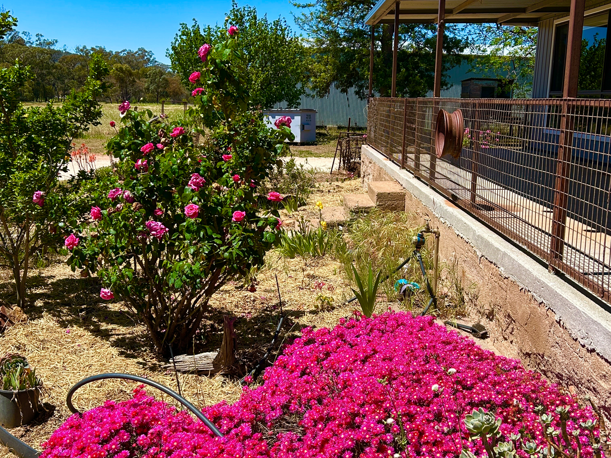 Three rainwater tanks, large 4 car garage with rubber mat flooring, workbench, power & lights; a 3m x 3m garden shed with concrete floor; and a large 20m x 9m machinery shed; plenty of space for the boat, caravan, trailer etc. There is also a dog yard & chook yard, mature peach tree & two small citrus trees.