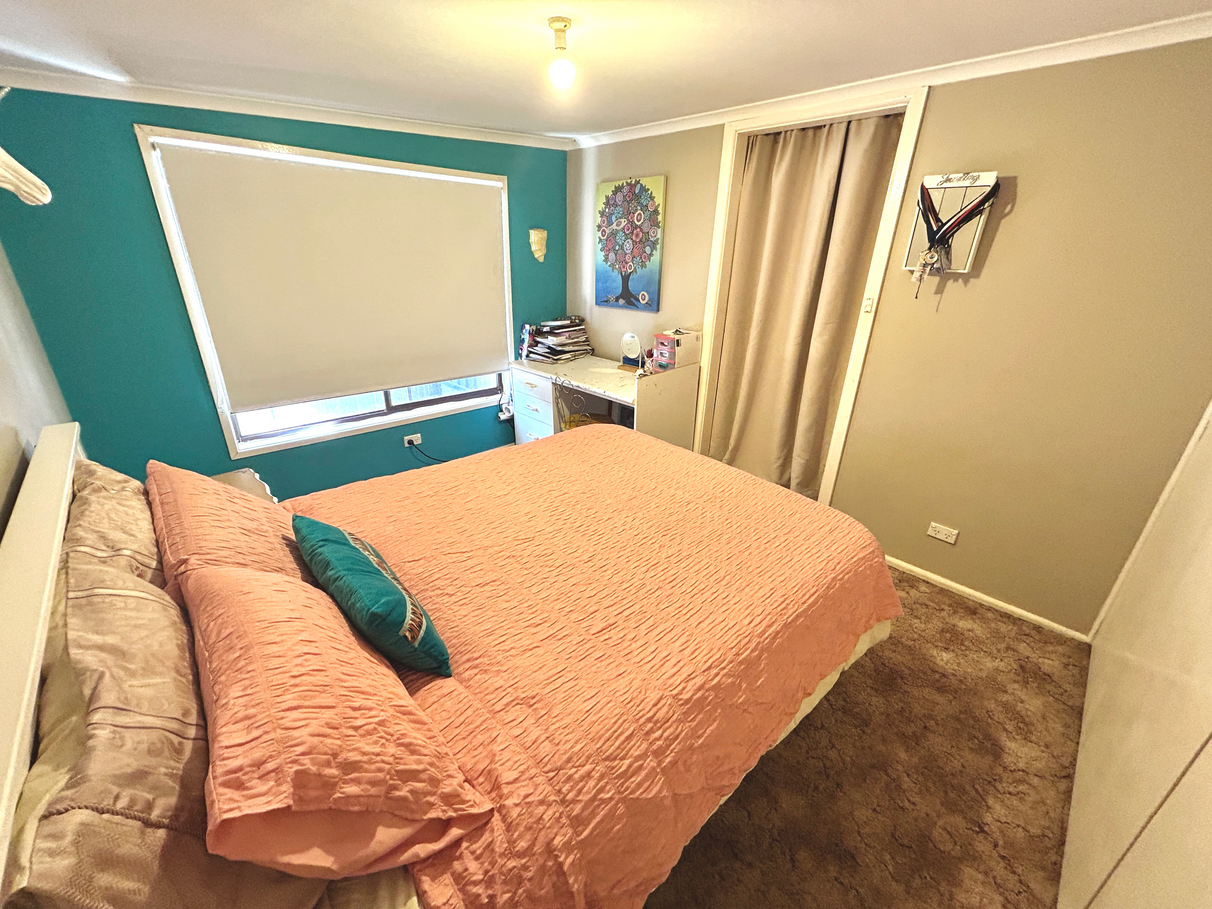The master bedroom comfortably fits a full queen bed suite plus has ample wardrobes, a/c vent and has a large window overlooking the front veranda and garden.