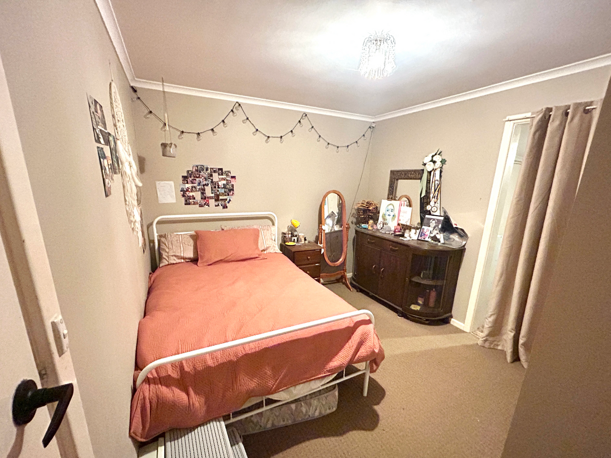 Bedroom 2 currently fits a double bed, a/c vent and ample wardrobes, window out to front verandah.