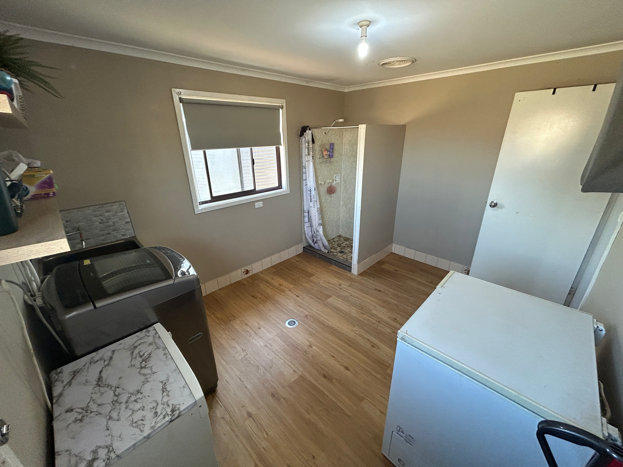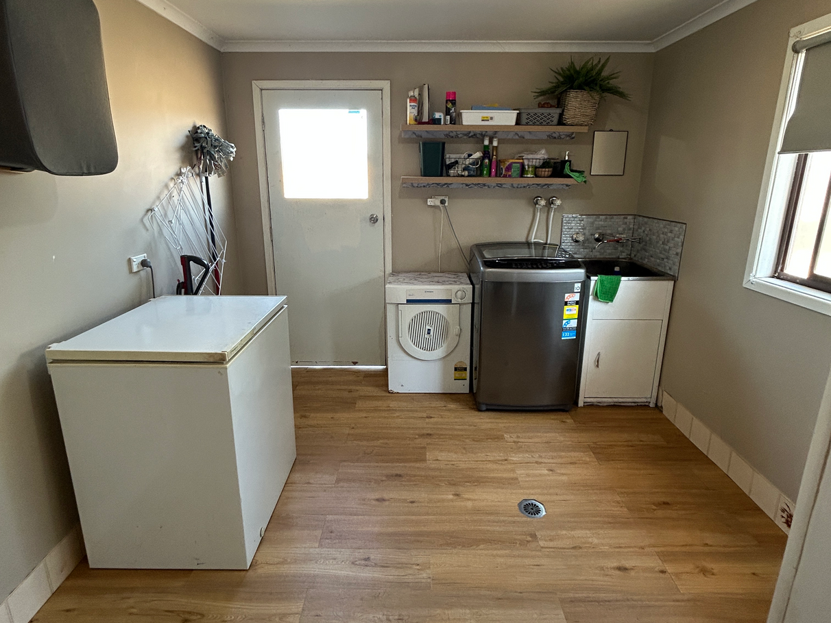 The very large laundry features a 2nd shower as well laundry tub, shelves and plenty of space for the second fridge or freezer.