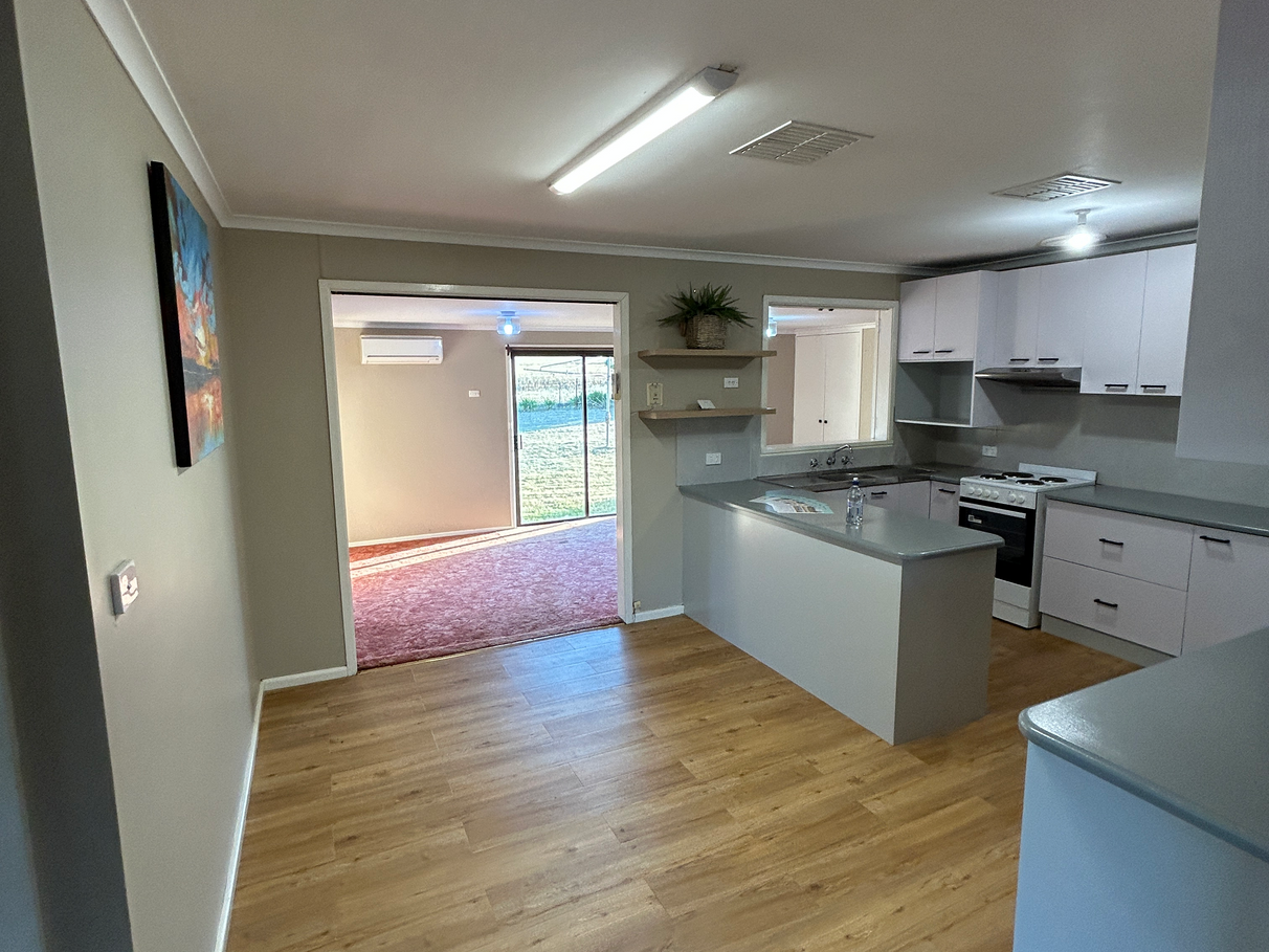 The home boasts a large covered entertainment verandah on the north side of the home, the house has 5 bedrooms, 2 living areas, large kitchen recently updated; includes plenty of storage, overhead fan, oven/cooktop, dishwasher, 2 a/c vents; seperate dining area.