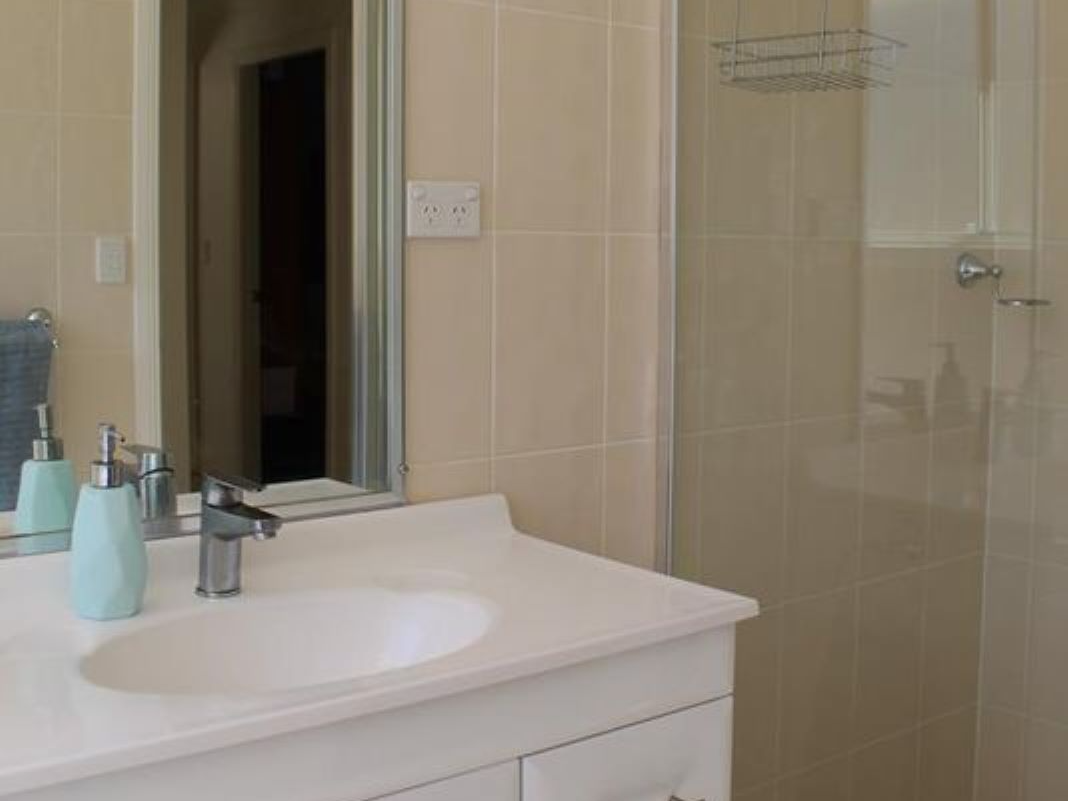 2 bathrooms - spa bath, shower, vanity, heat lamps and exhaust fans