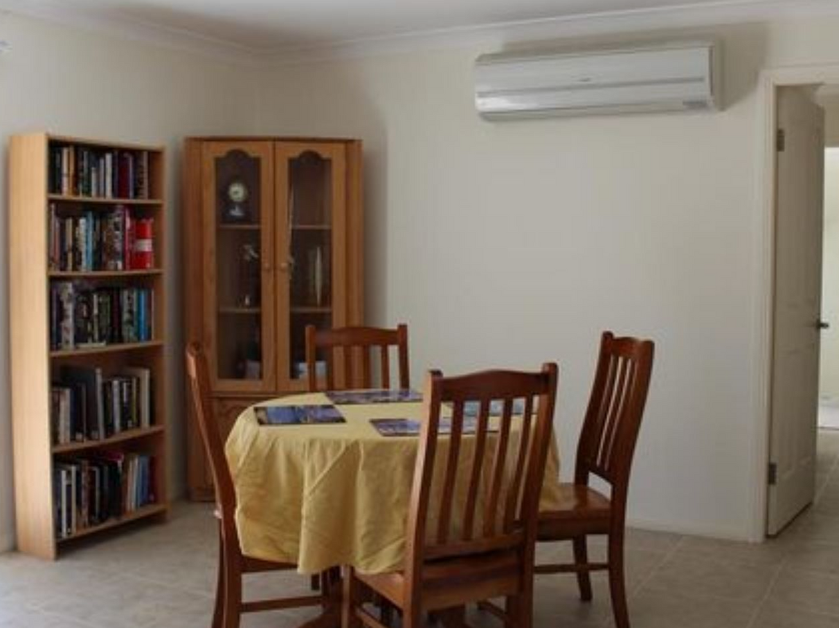 The driveway meanders past a small dam and opens up to a large clearing, cleverly secluded from view, and presents a lovely welcome home. This architect-designed home includes modern kitchen and bathroom and has been carefully built with a north/south aspect, is fully screened and lockable, with blinds throughout.