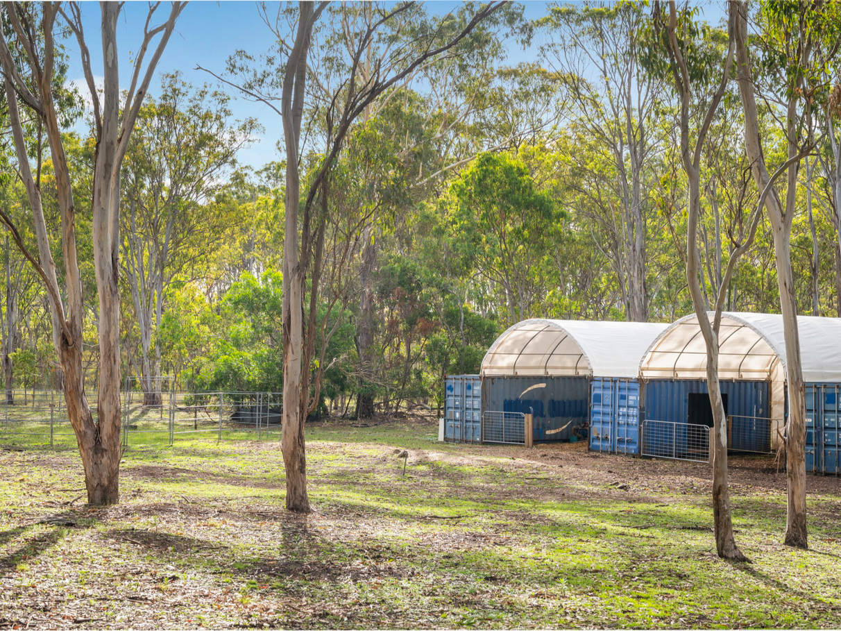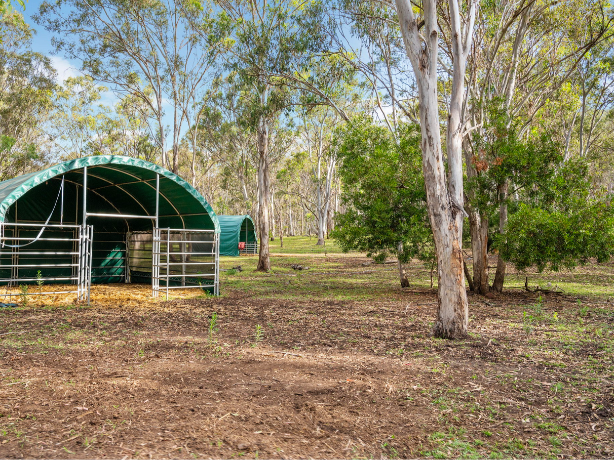3 Larger fenced paddocks up the back, all feature their own stylish shelters, floated water troughs and an additional 3x 20ft containers with domes as a massive shed/storage/workspace for the animals or machinery.