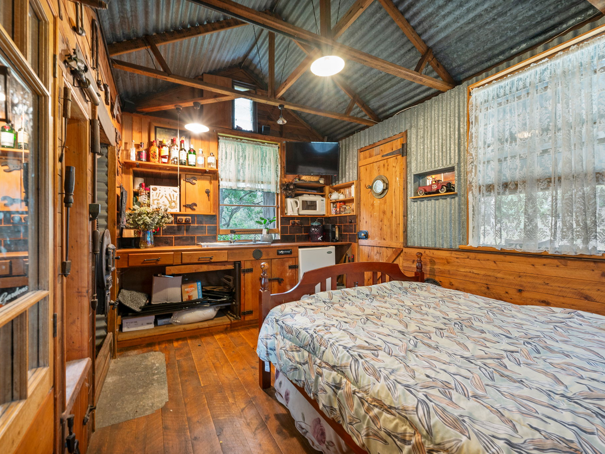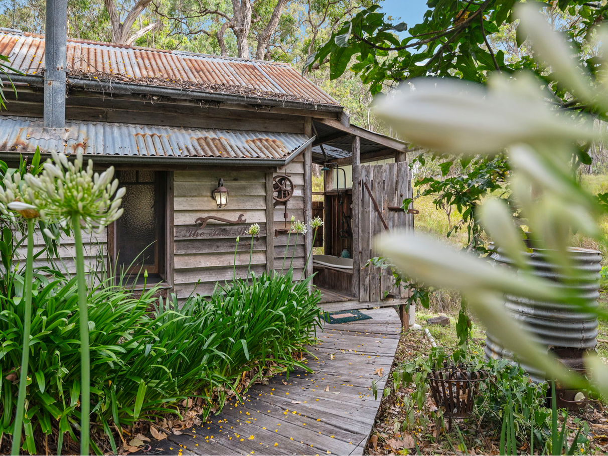An additional fully completed and absolutely uniquely custom built cabin, nicknamed “The Toolshed” is set up beautifully for family or guests, or turn into a much sort after BNB. The cabin features an outdoor bath/shower with nature views and separate toilet. Inside has been meticulously handcrafted featuring repurposed tools and Knick knacks throughout with a kitchenette and balcony.