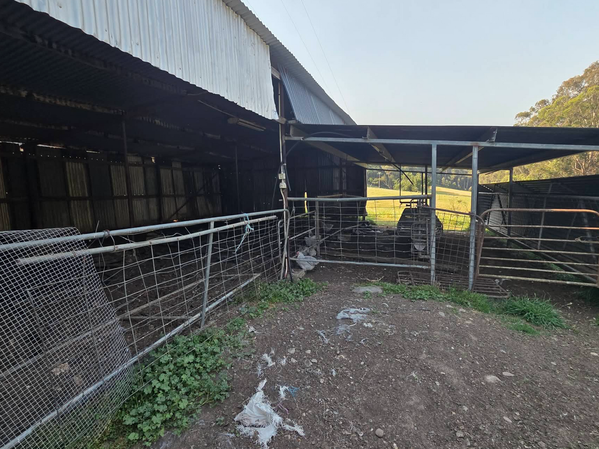 Additionally, there are two more large sheds in good condition, one being the old calving shed comprising 140m2, and the other being a very nice antique steel framed hay shed that has enormous potential for repurposing comprising 75m2. There is also a semi open double garage next to the residence.