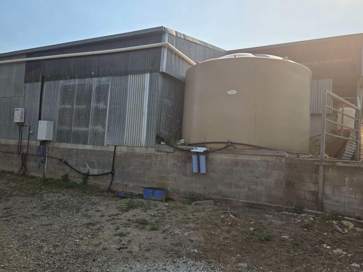 The 22,000-litre rainwater tank is supplied by the roof of the dairy.