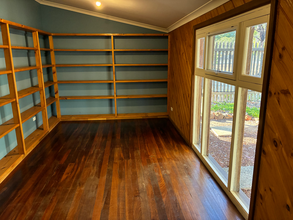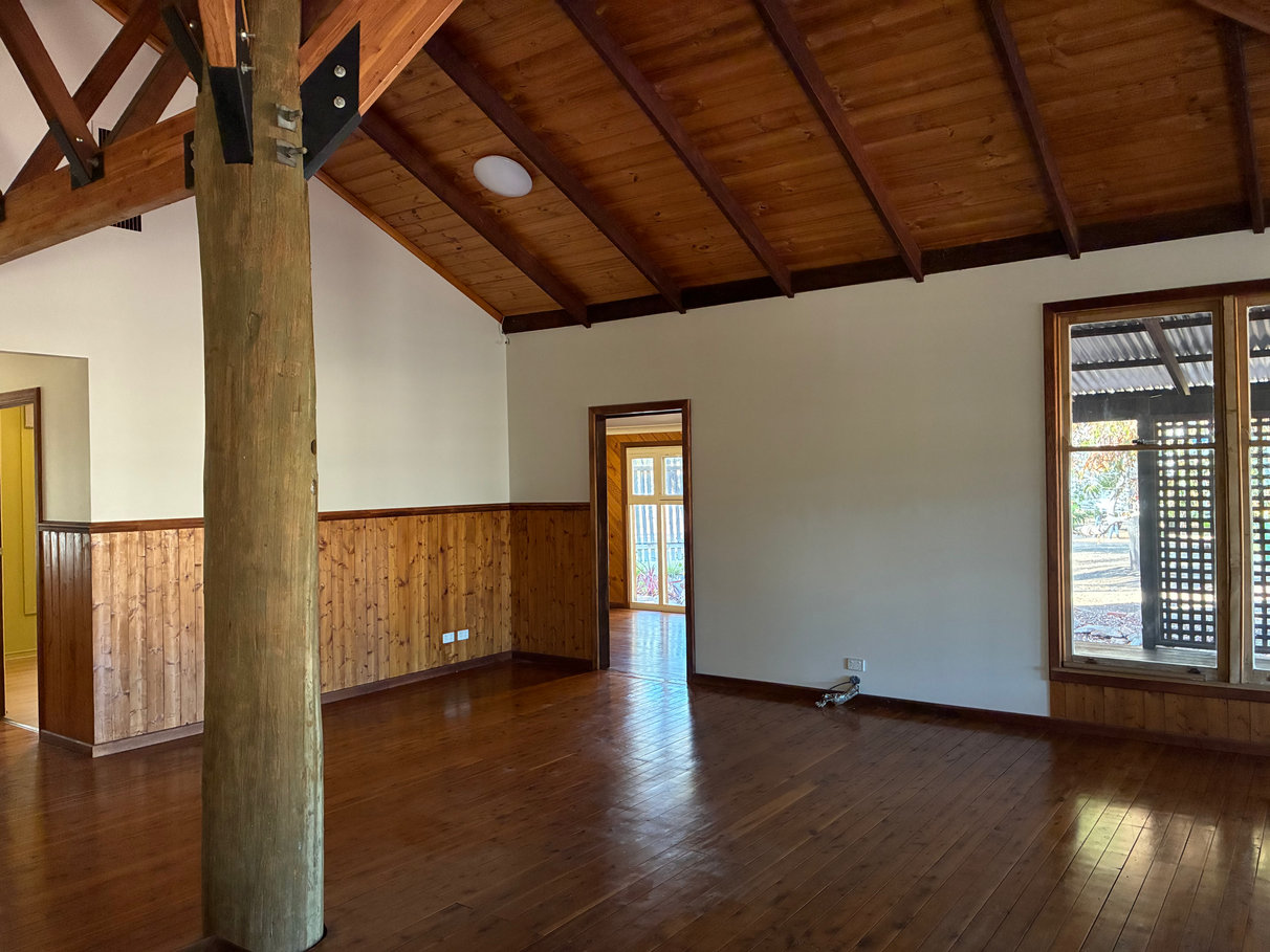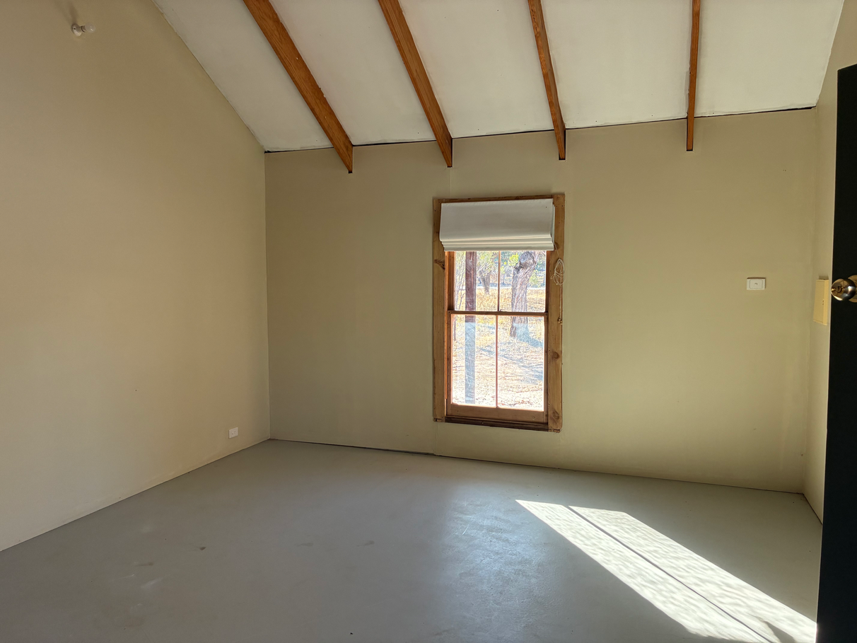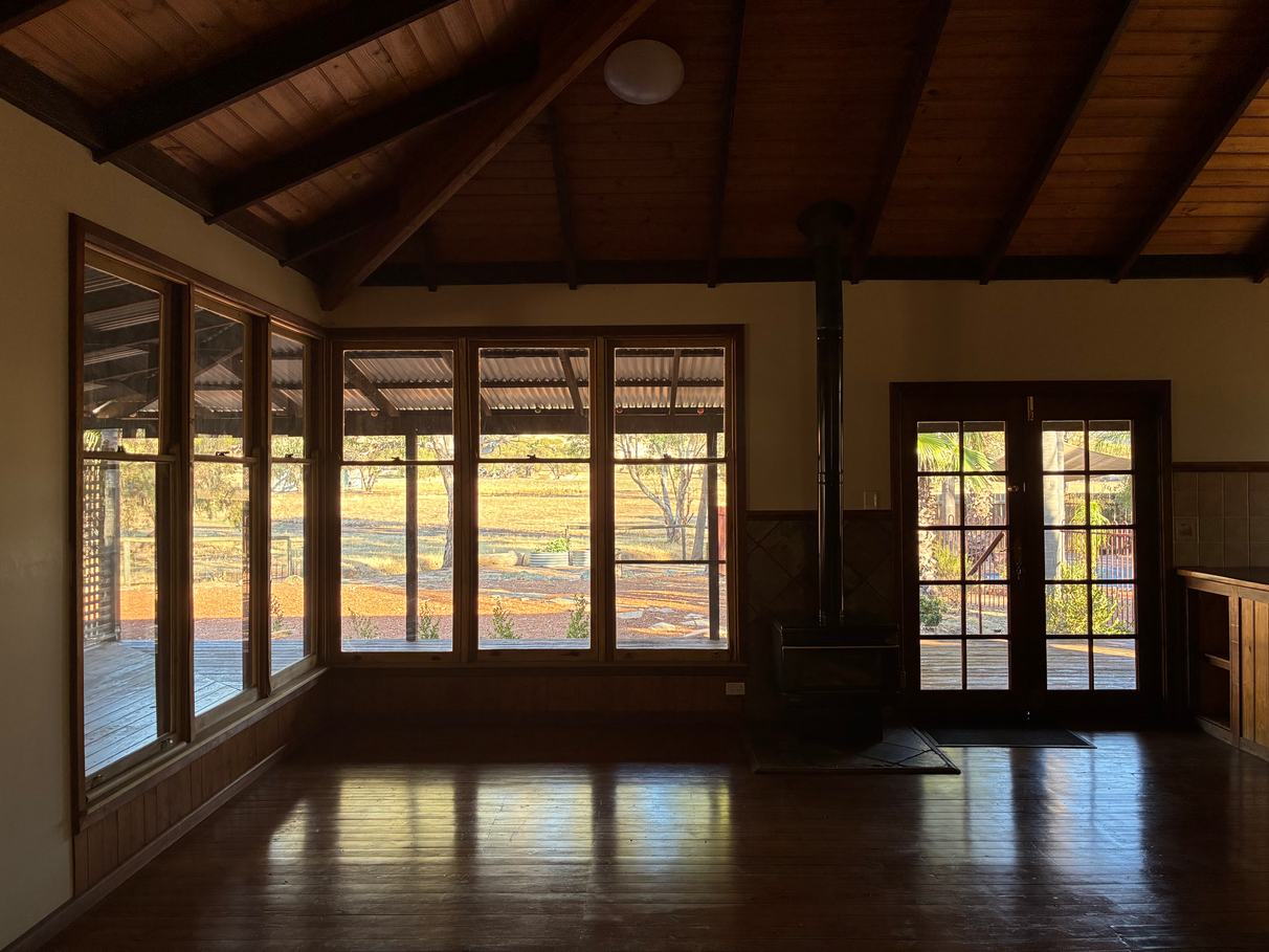The main house has 3 bedrooms, a study with built-in shelves and one bathroom. A ducted evaporative air conditioner assists with cooling in the hotter months, and for winter a cosy wood fire to sit by while you look out from the six full length sash windows to the views across your property and beyond.