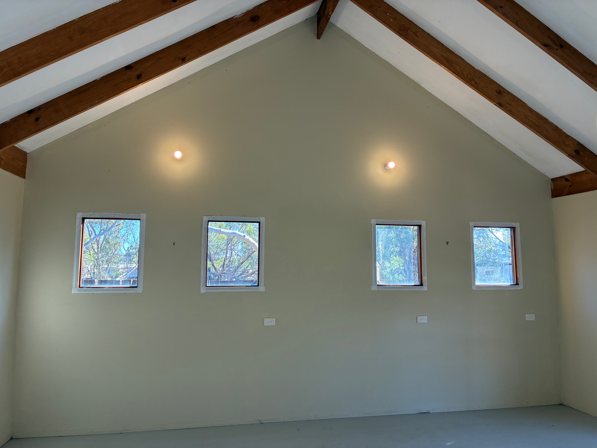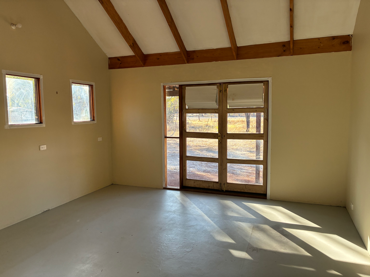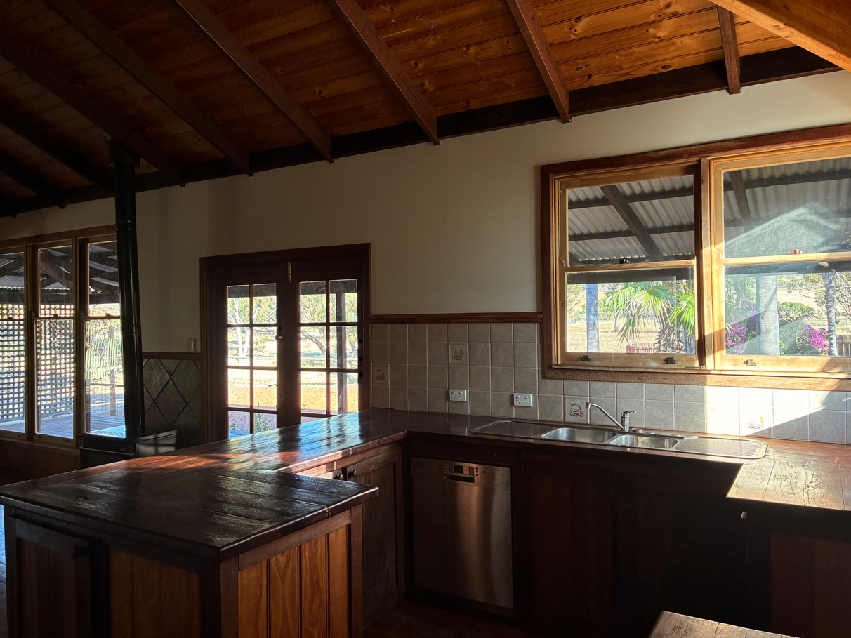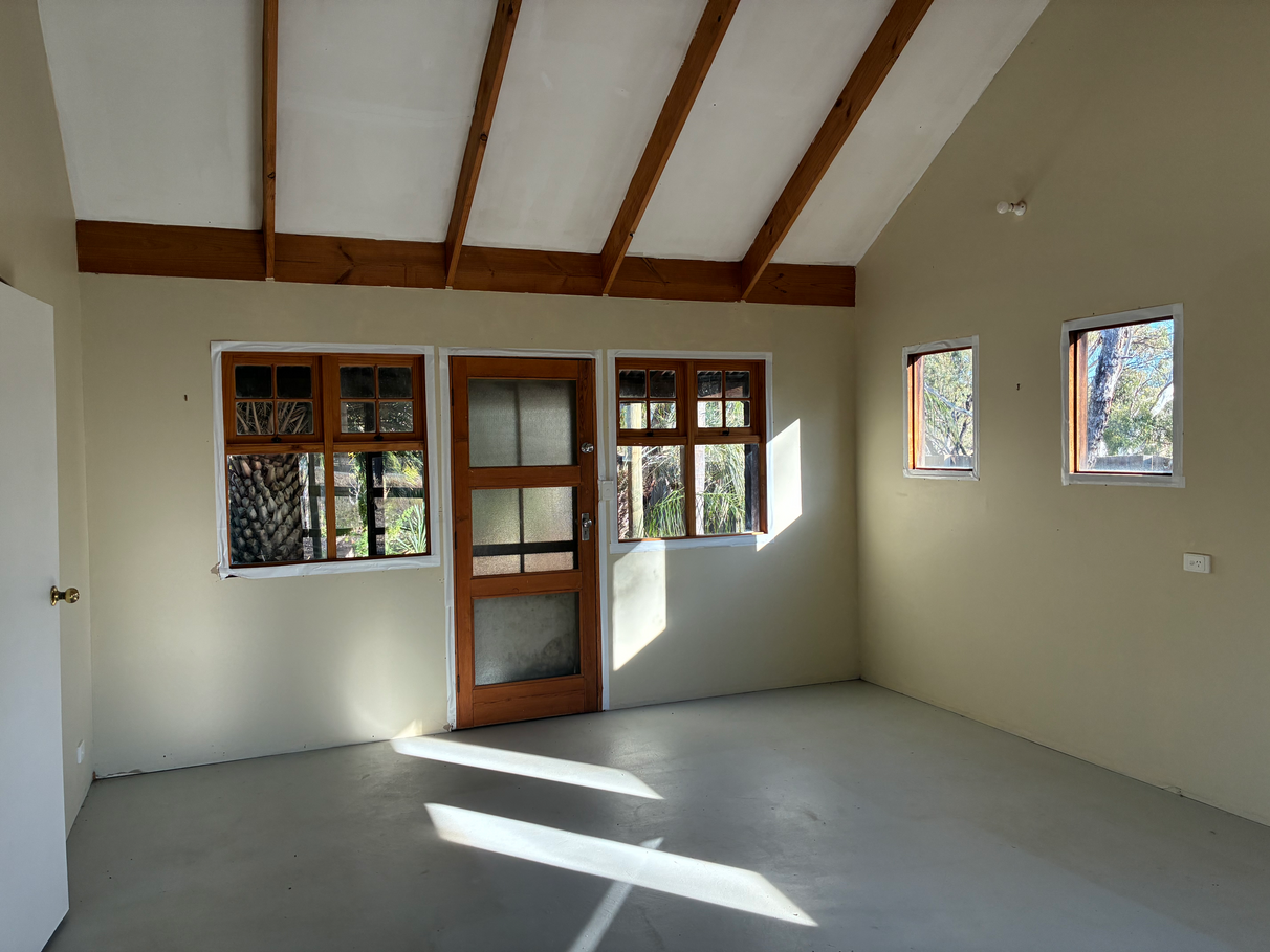 The main house has 3 bedrooms, a study with built-in shelves and one bathroom. A ducted evaporative air conditioner assists with cooling in the hotter months, and for winter a cosy wood fire to sit by while you look out from the six full length sash windows to the views across your property and beyond.