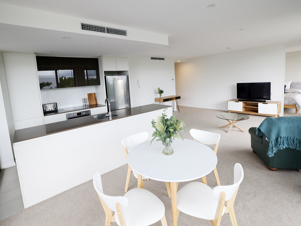 Of significant note is the expansive wrap around balcony and plush interior, a quality finish with luxurious carpet, premium tiling and solid stone benchtops. The kitchen is appointed with German made AEG appliances and induction cooktop, providing the very best in performance and complimented by high end fittings from Grohe.
