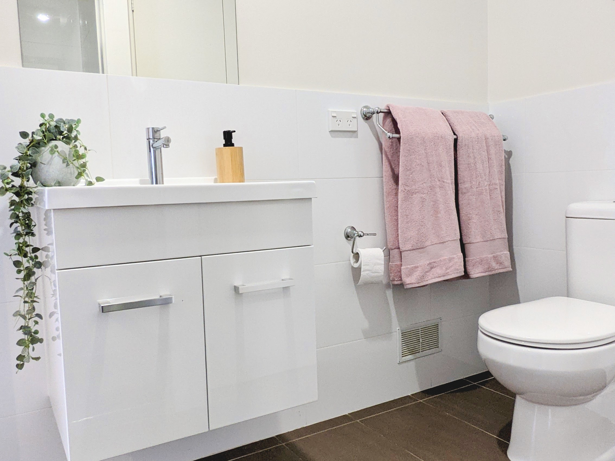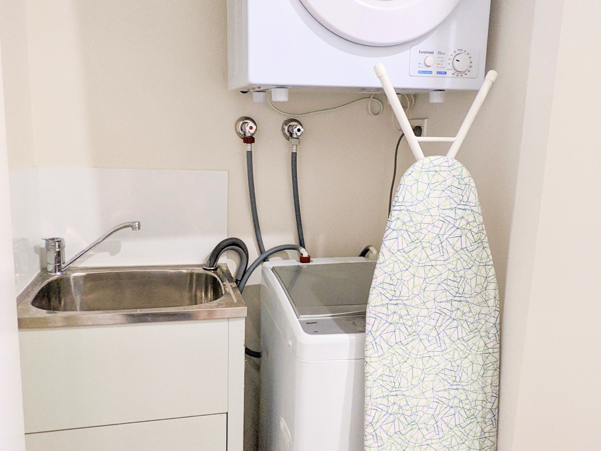 • Bathroom shares space with a concealed Laundry behind bi-fold doors.