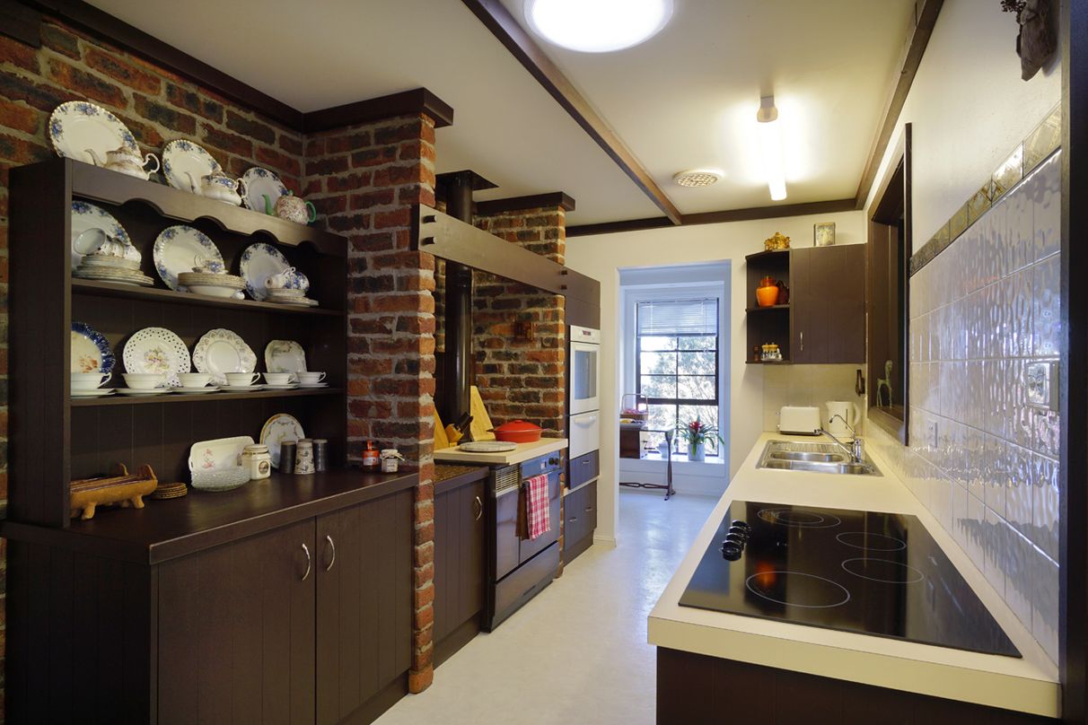 Practical kitchen with ceramic cooktop and separate built-in oven.