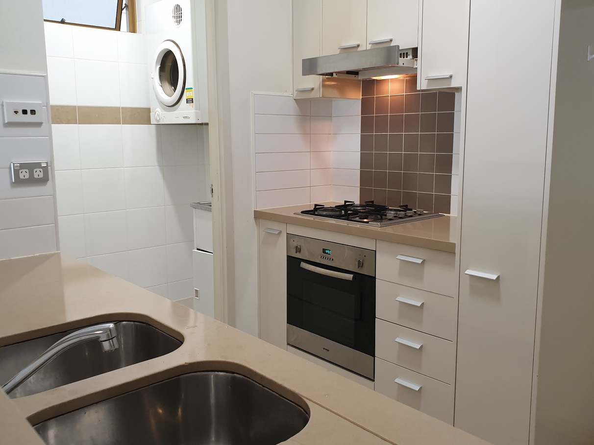 - Modern kitchen with stone bench top, gas cook top, dishwasher, oven,Microwave