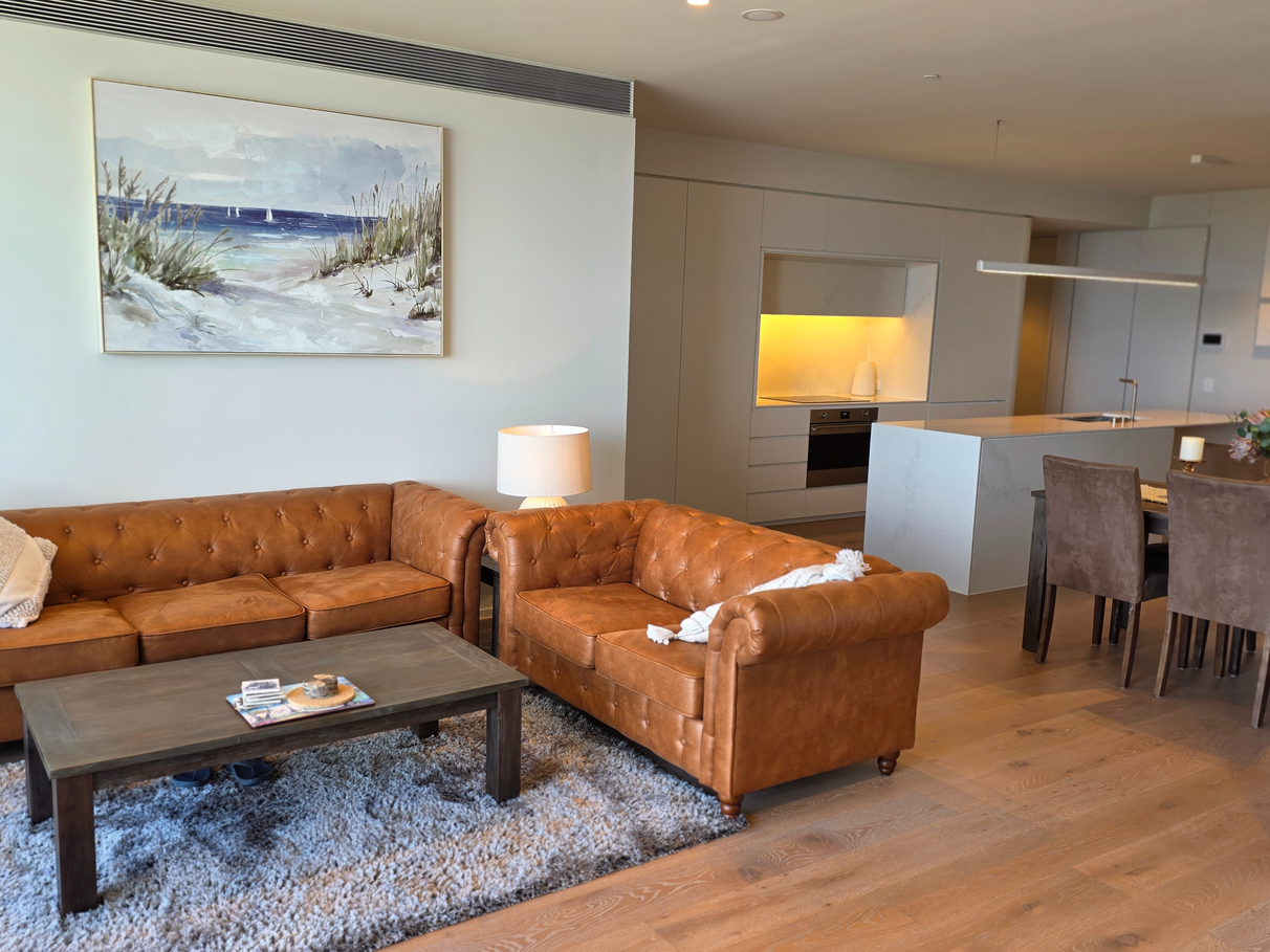 The apartment is very private and is situated on the east side with never to be built out views. The internal layout is magnificent, being one of the largest units in Nautilus. It has beautiful timber floors throughout along with heated bathroom tiles. While cooking in the gourmet kitchen we turn on one of the two electric fireplaces which create an air of romance.