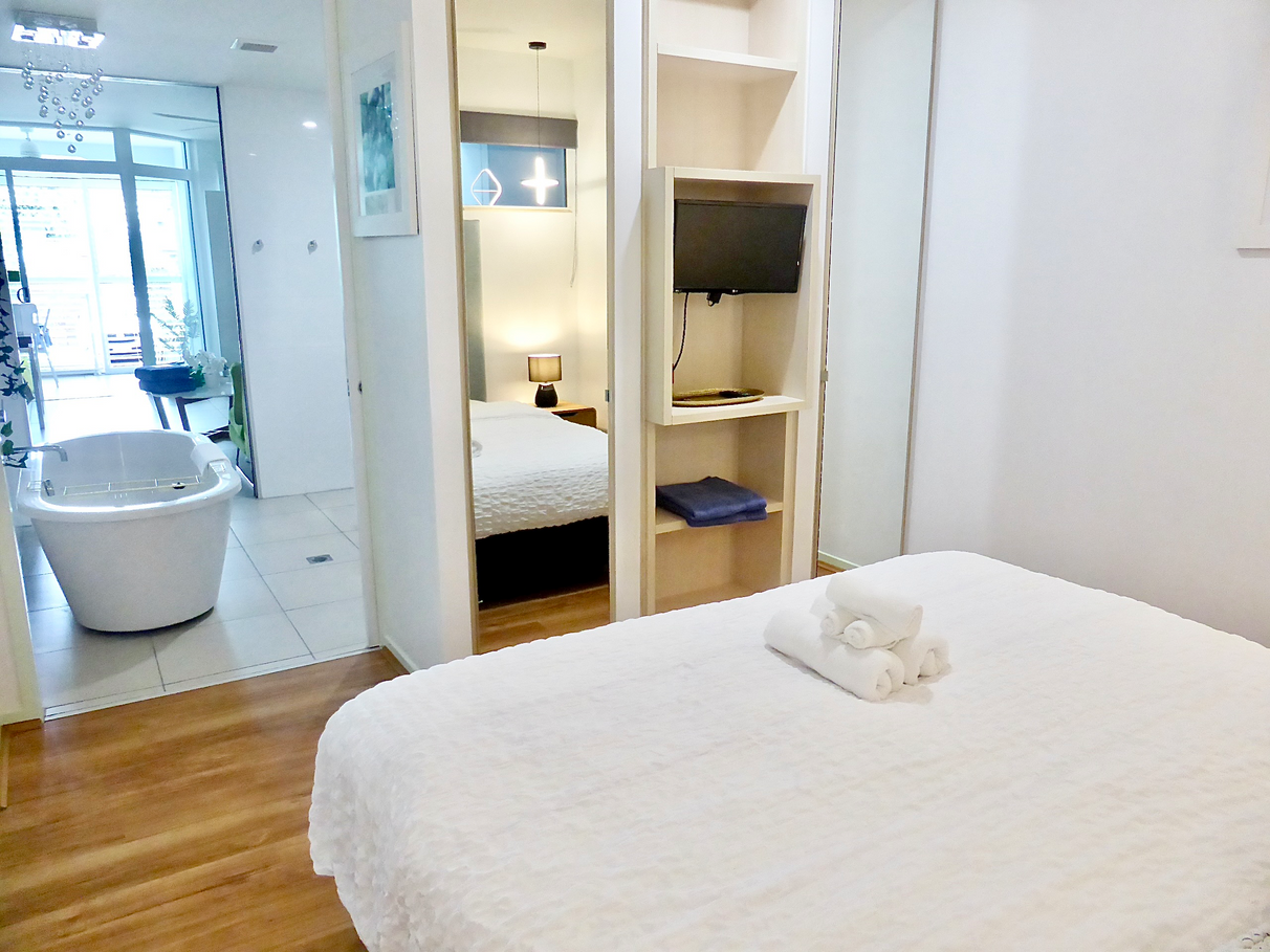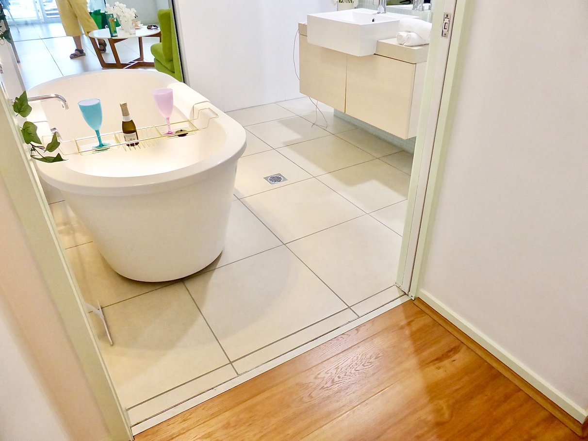 The oversized two-way ensuite bathroom impresses with a freestanding bath and separate shower.