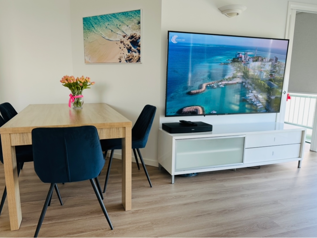 The building is gated and monitored 24 hours. The apartment is located just 150 meters from the stunning beach and walking distance to vibrant dinning scene. There is close access to public transport G-link tram just at front of the building, buses.