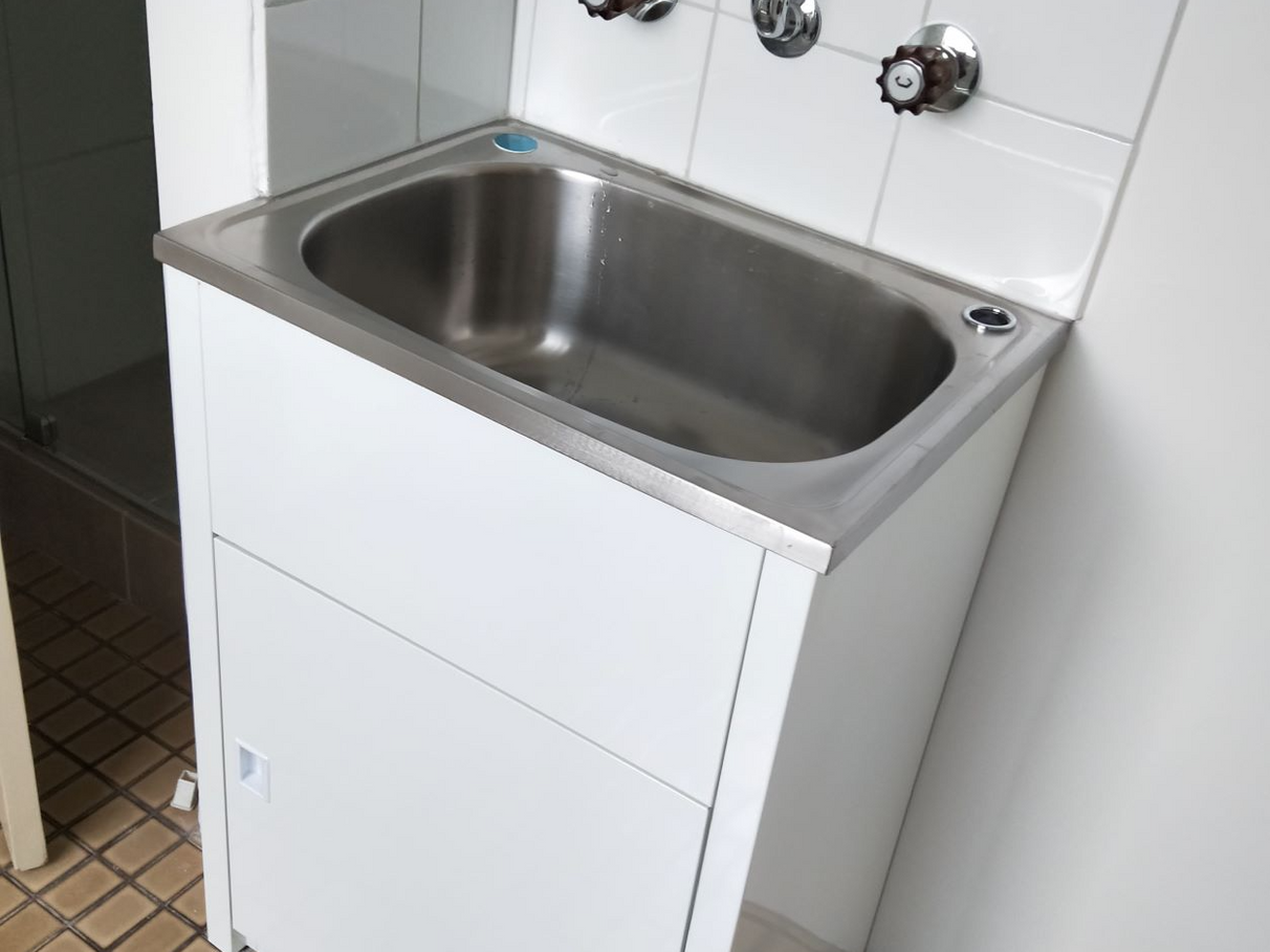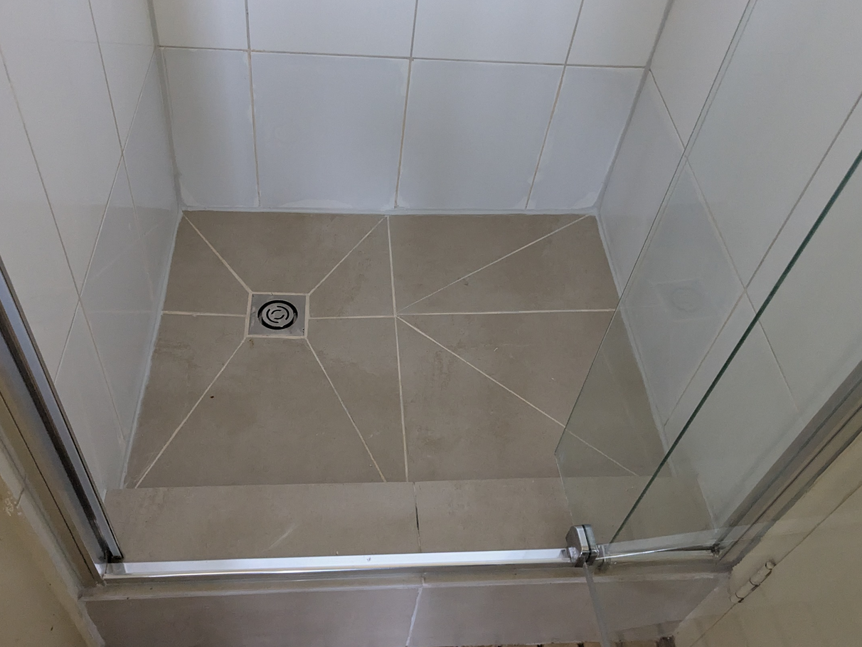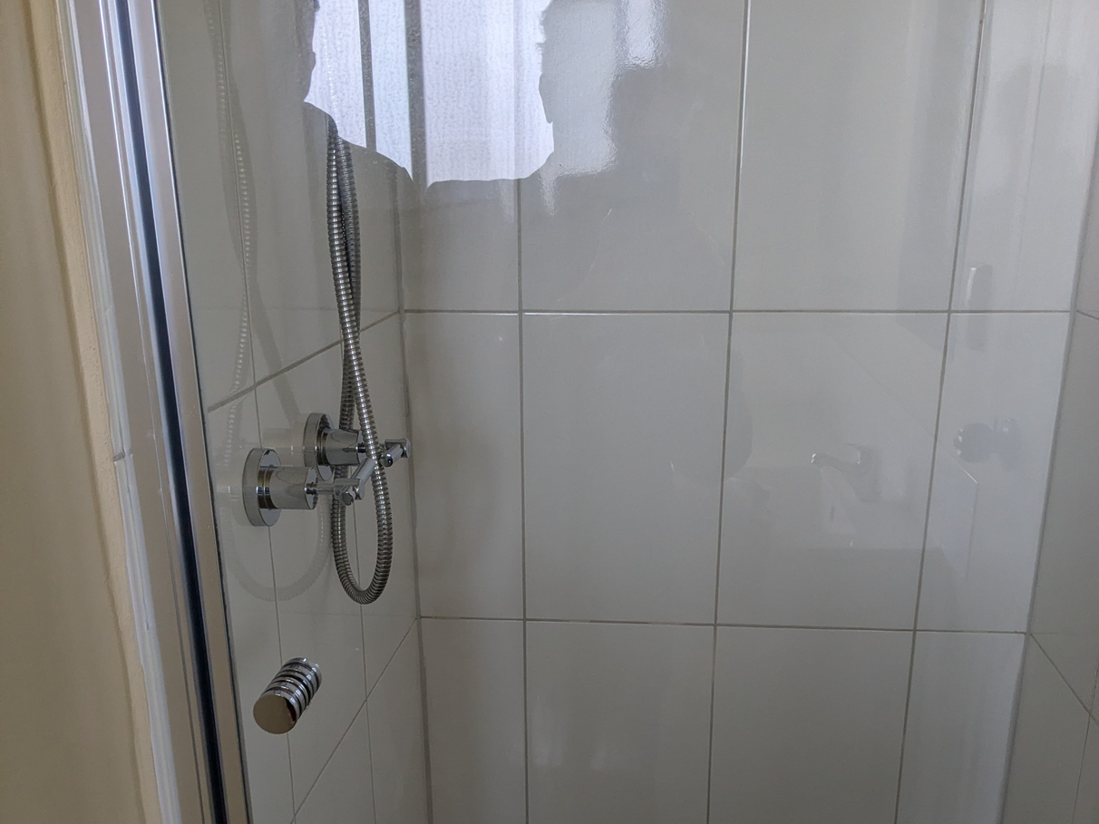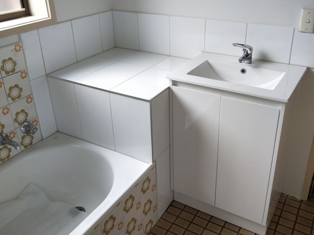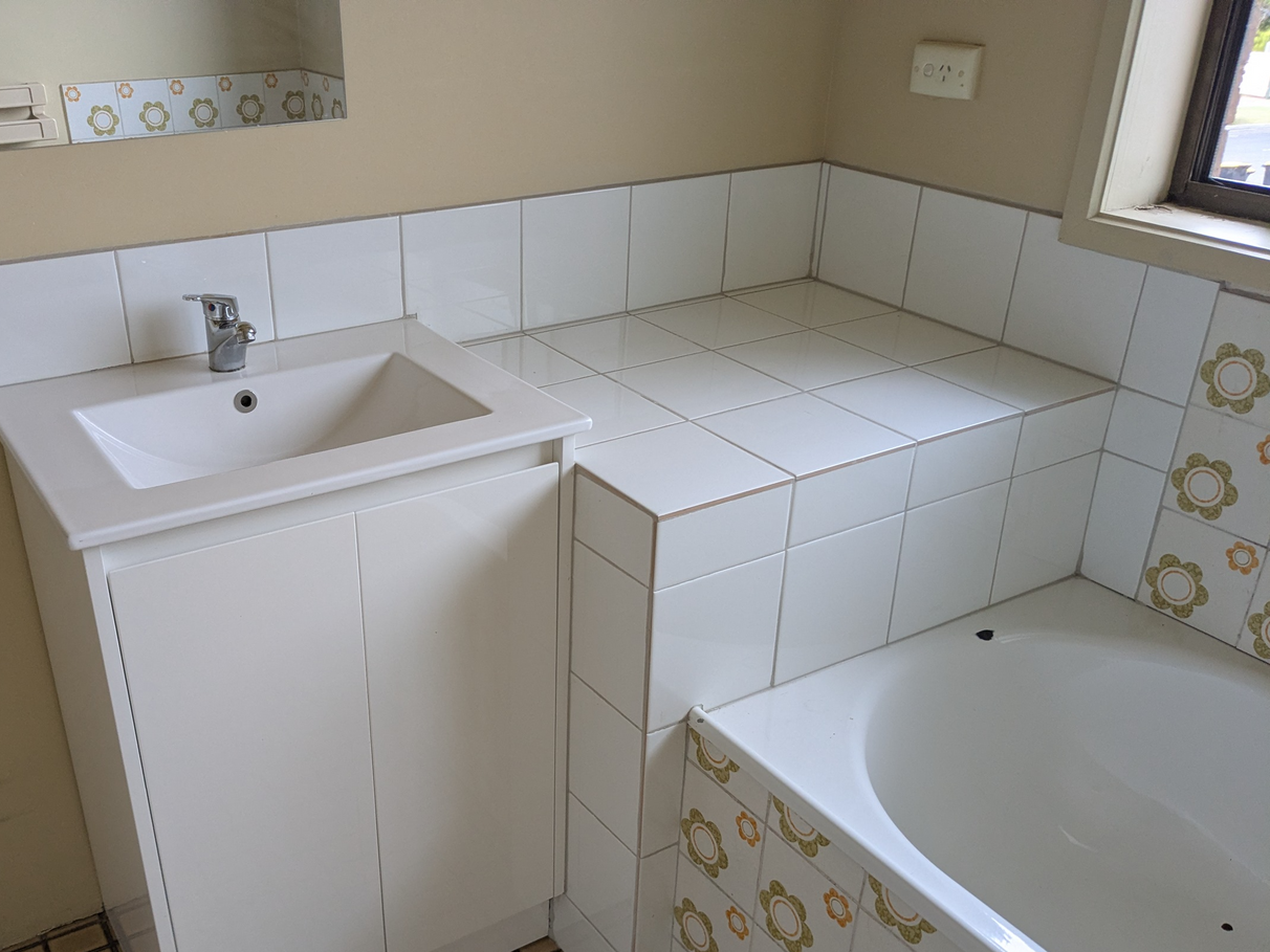 Combined tiled bathroom/laundry with separate shower re-tiled recently.