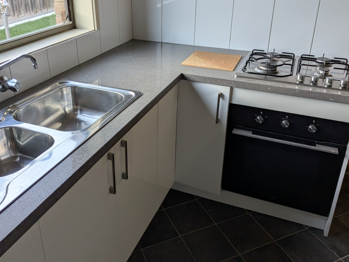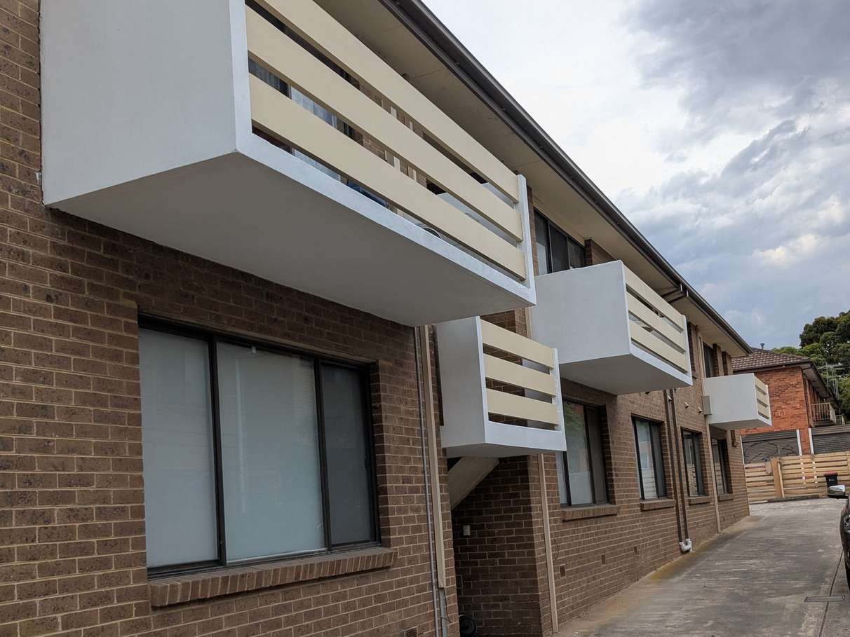 These are two-bedroom units, three on ground floor and three on the first floor. The first-floor units have a balcony each. These are bright and clean, with nice open plan lounge and kitchen with reverse cycle near new air-conditioning. The two good sized bedrooms have built in wardrobes. The kitchens are refurbished with stone benchtops (Except Flat 5 which has the original laminate bench tops.)