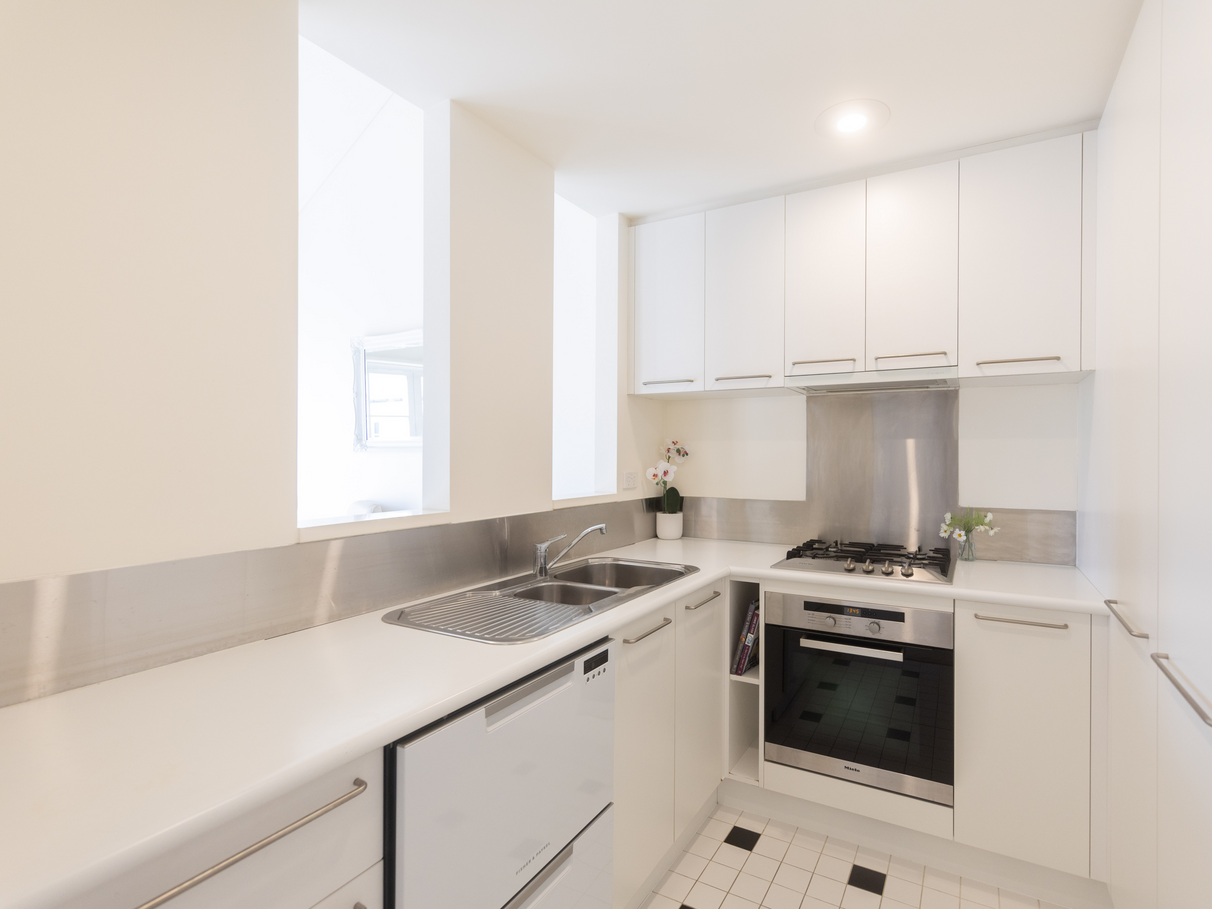 The smartly appointed kitchen offers excellent storage and Miele cooking.