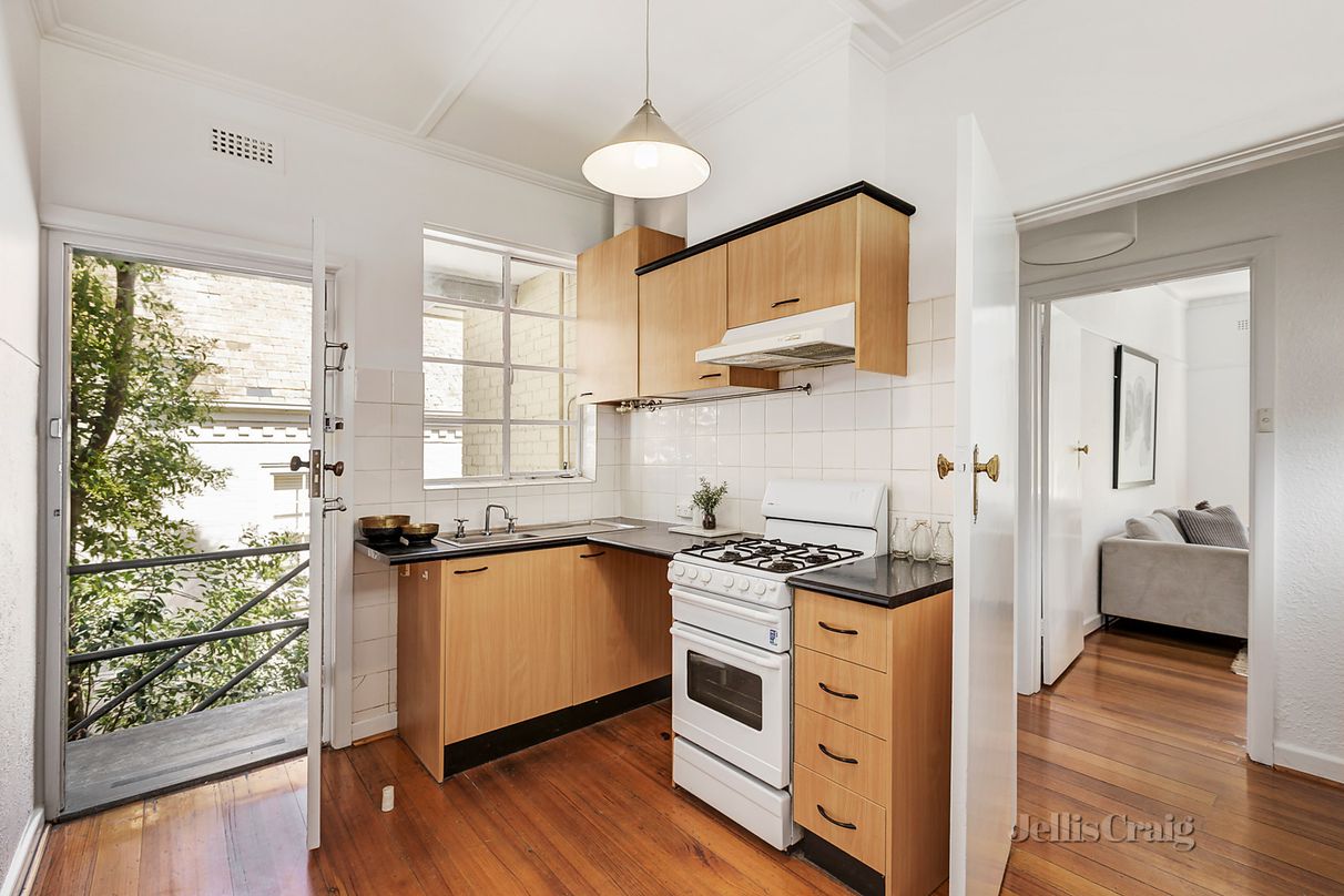 Prestigiously placed on the edge of cosmopolitan Toorak Village, this large one bedroom apartment is an enchanting double-brick beauty, ready to suit the lifestyle desires of young professionals. On top of Winston Court; a boutique block of eight, the leafy tree-top streetscape complements elegant high-ceiling spaces and polished floorboards. Afternoon sunshine streams into the generous lounge with open fireplace and the double bedroom with built-in robes. Neatly-presented, rejuvenate in the stylish kitchen/meals and bright white bathroom, or step beyond the secure entry to top-rated restaurants, appealing cafes, fine retailers and the tram for easy access into South Yarra and the city. A winning first step or astute investment.