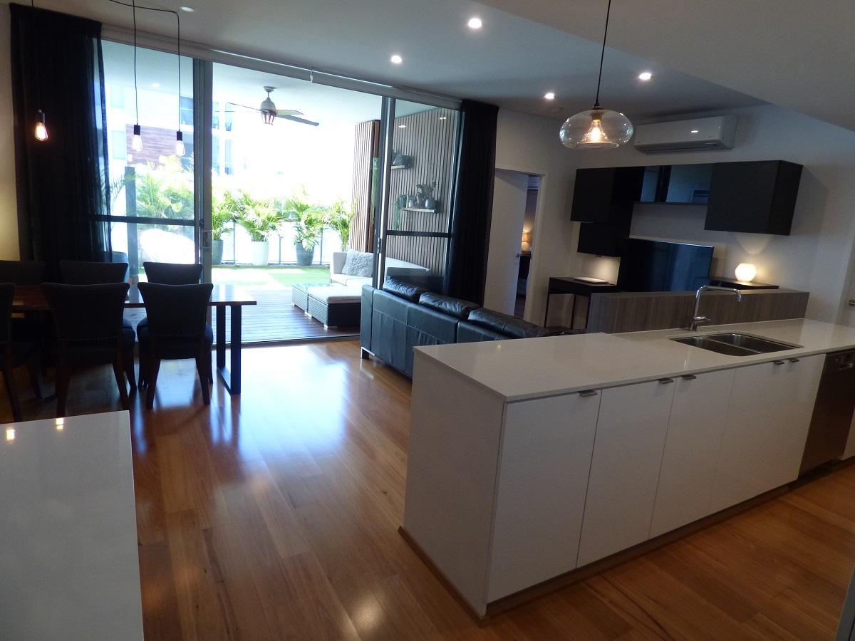 This apartment is the best in the building; it boasts beautiful wooden floors, full block-out blinds and sheer curtains for privacy, reverse cycle air-conditioning throughout, heaps of kitchen storage, huge floor-to-ceiling sliding doors that open to an outdoor wooden deck and huge grassed (Astroturf) balcony, creating the perfect canvas for your indoor-outdoor living space. It comes with a washing machine, dryer, and dishwasher but is otherwise unfurnished. Plus, it comes with a separate storeroom and TWO secure parking bays!