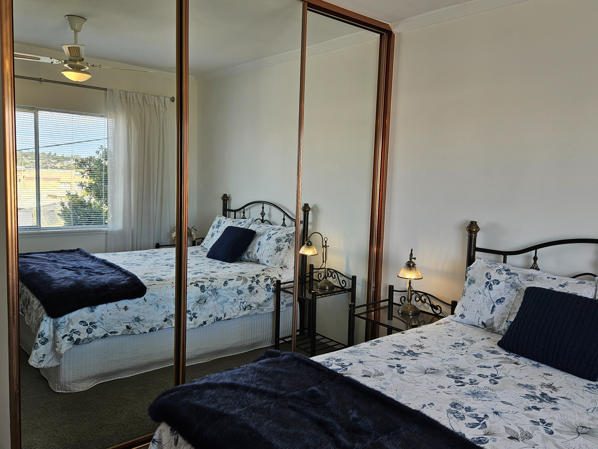 Accommodation includes two bedrooms with ceiling fans and built-in mirrored robes, serviced by a central bathroom, plus the added convenience of a separate WC.