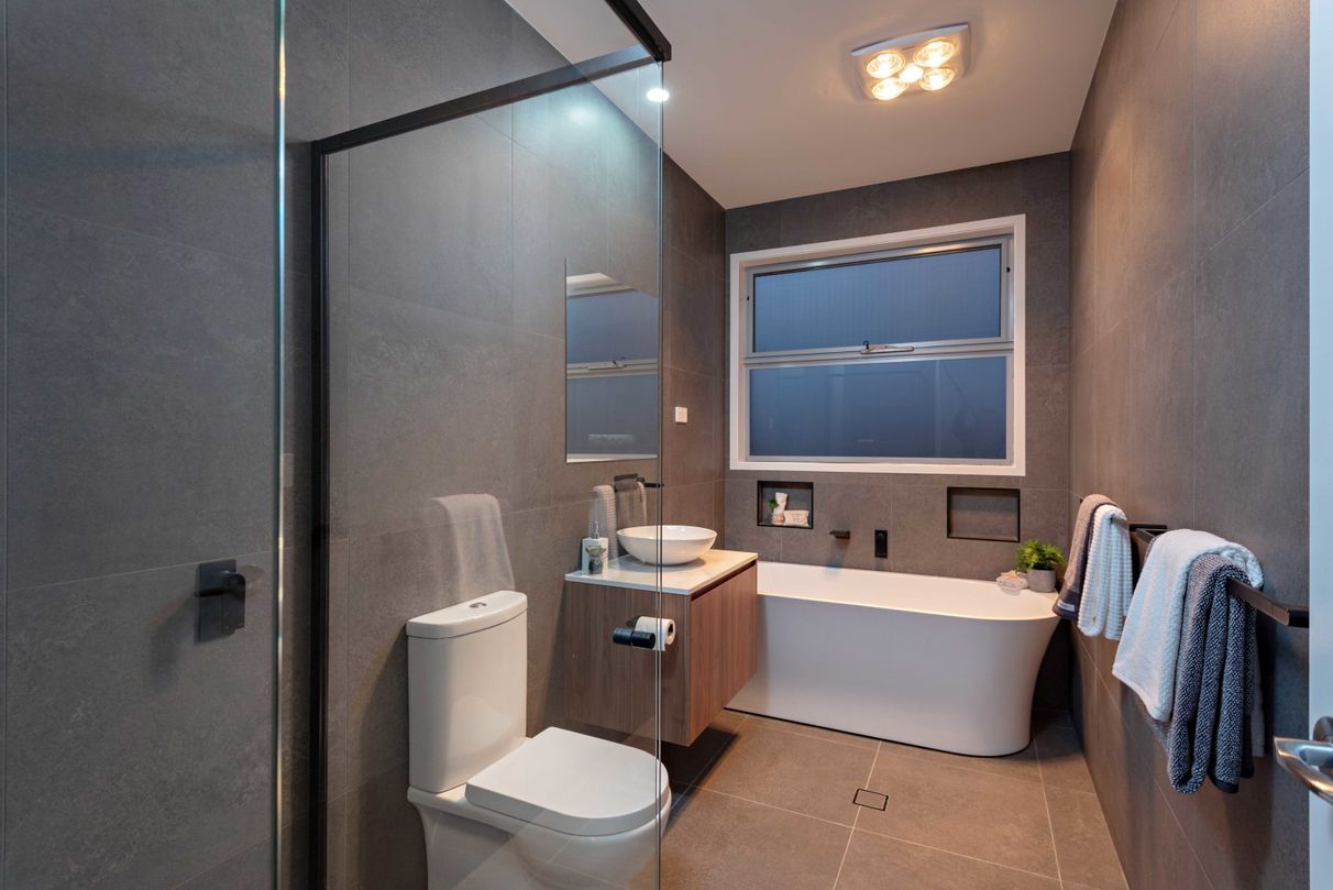 The stylish appointed kitchen has a 900mm stainless steel Westinghouse cooktop and oven, Smeg microwave and Westinghouse dishwasher. The kitchen is finished with an elegant 40mm granite bench top with a waterfall edge. The kitchen comes with a butler’s pantry with an abundance of cupboard space.
