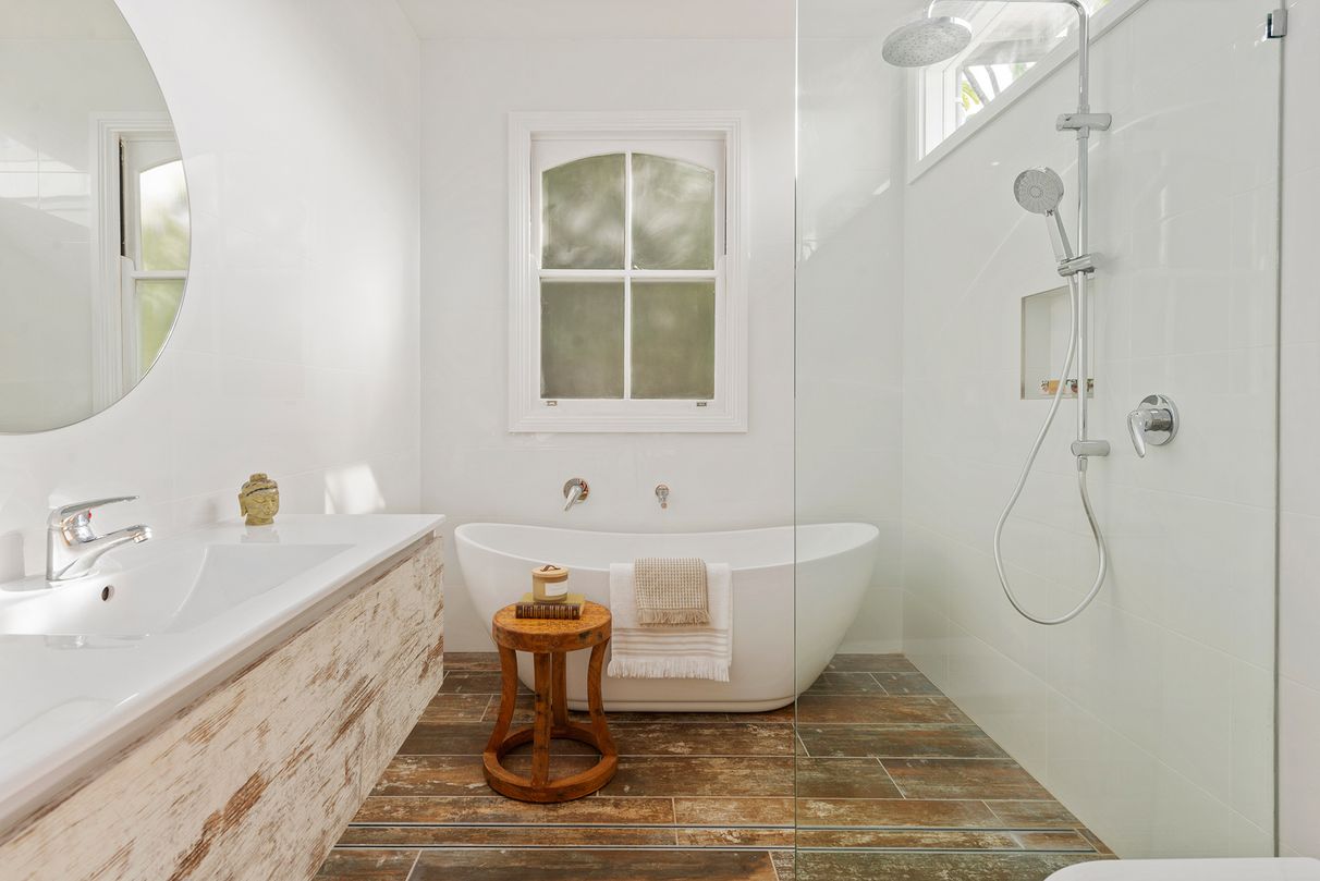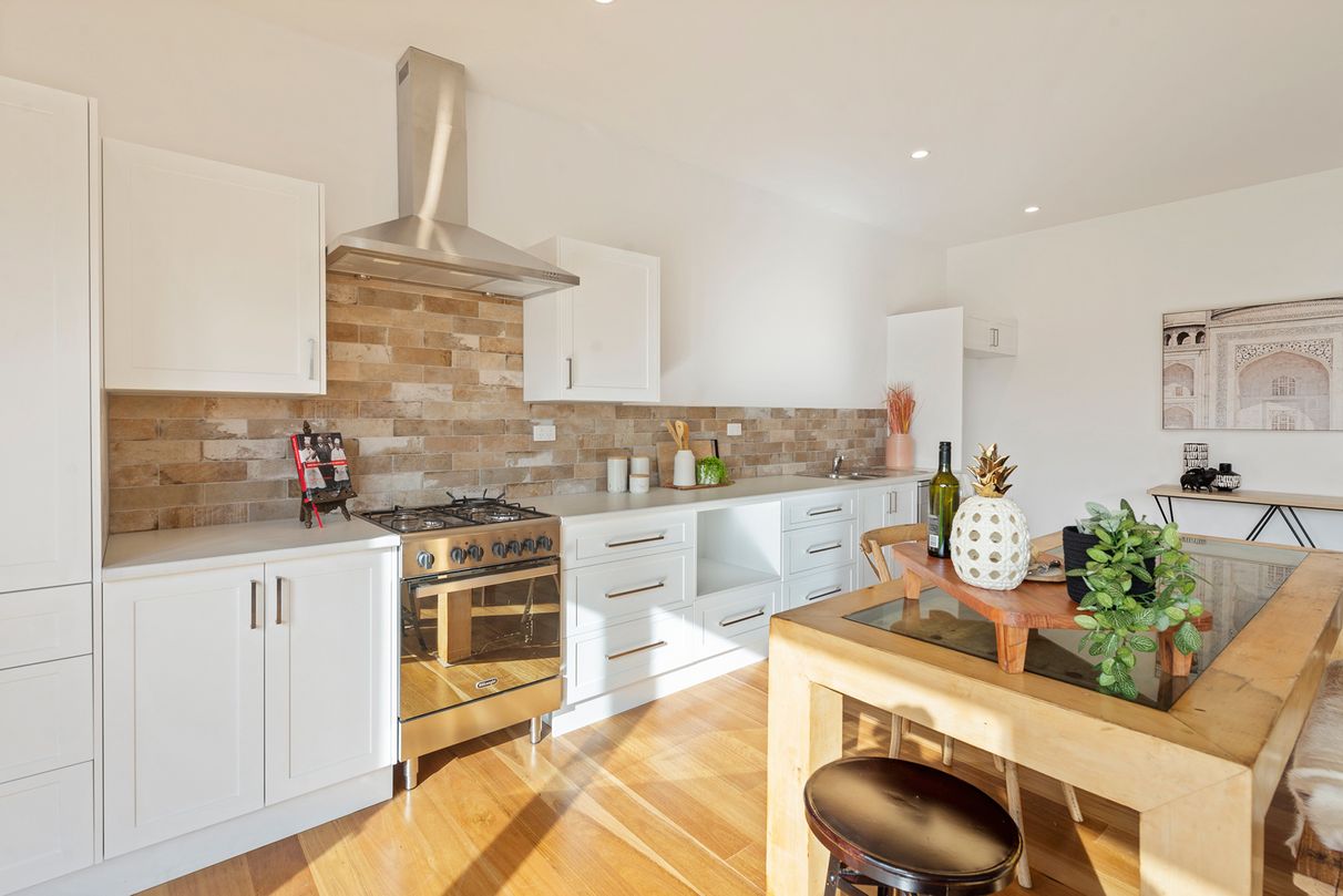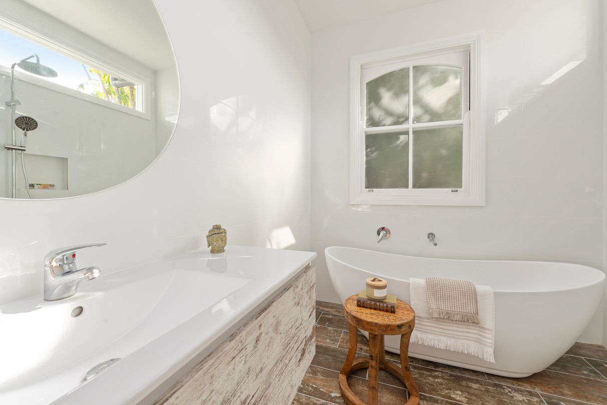 A separate lounge room, three beautifully appointed double bedrooms with stunning curtains & light fittings. French doors open onto private decks. Serviced by a new light-filled central bathroom equipped with a gorgeous freestanding bath and separate shower. A seperate laundry with ample storage.