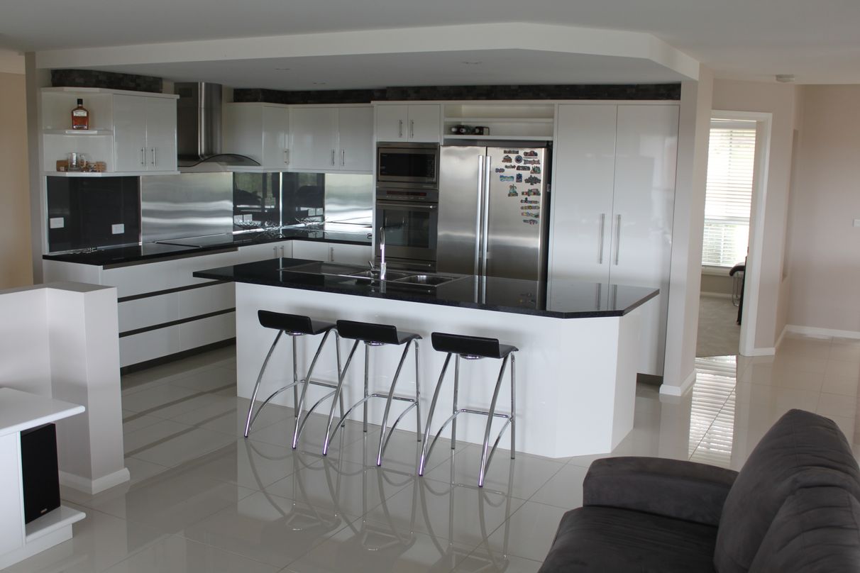 Built on a suspended concrete slab upstairs with in slab heating, double glazed windows & sliding doors, terracotta roof tiles, spacious rooms throughout, a modern painted kitchen with quality appliances, a three way main bathroom, three large bedrooms upstairs & the fourth downstairs which is big enough to be a media room, rumpus room or man cave, fully landscaped with a tiled driveway & a double garage upstairs.