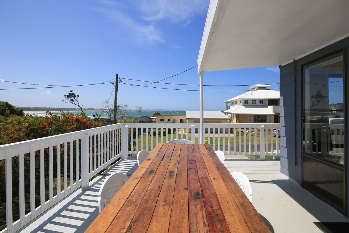 The property is a beautifully renovated 5 bedroom, 3 bathroom home and is complimented by a huge entertaining deck with views all the way down the beach to the north. An amazing spot for an afternoon drink and BBQ.