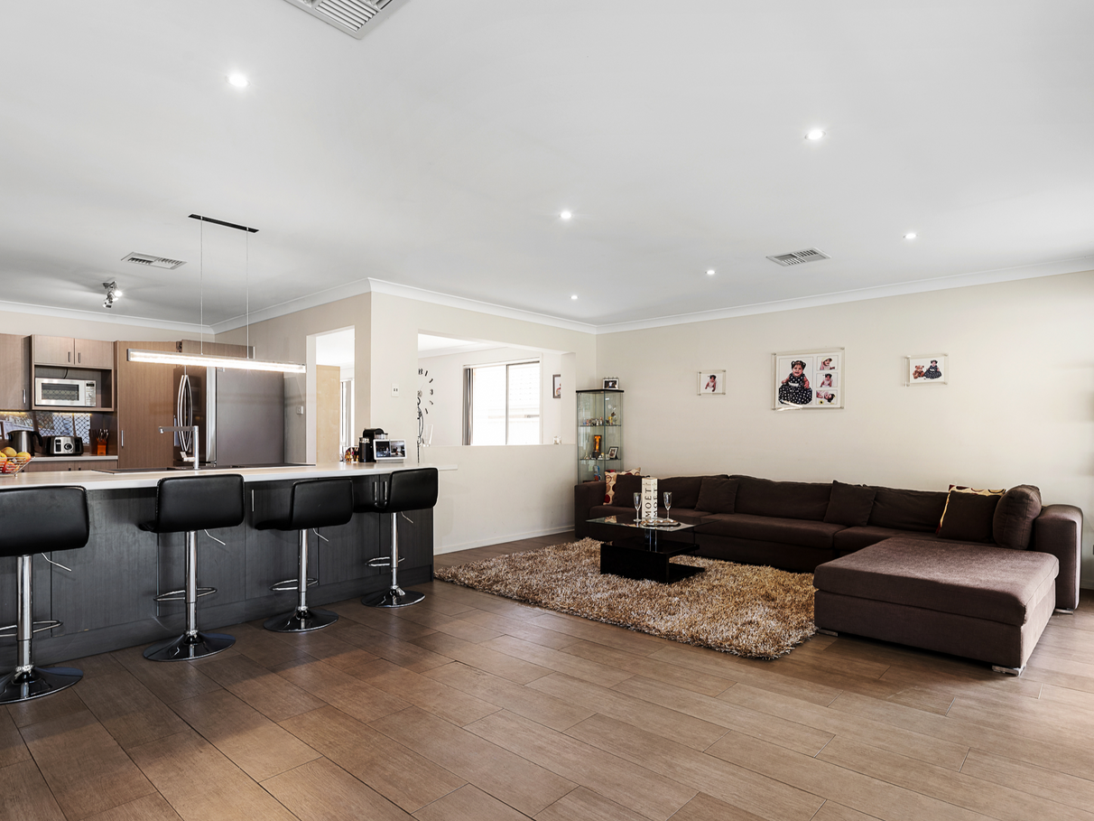 Stepping inside the home the quality continues with ducted air conditioning, premium lighting, floor to ceiling bathroom tiles, timber floor and feature look floor tiles throughout. The kitchen attracts the avid cook with ample storage and bench space, showcasing premium cabinetry and an integrated dishwasher.