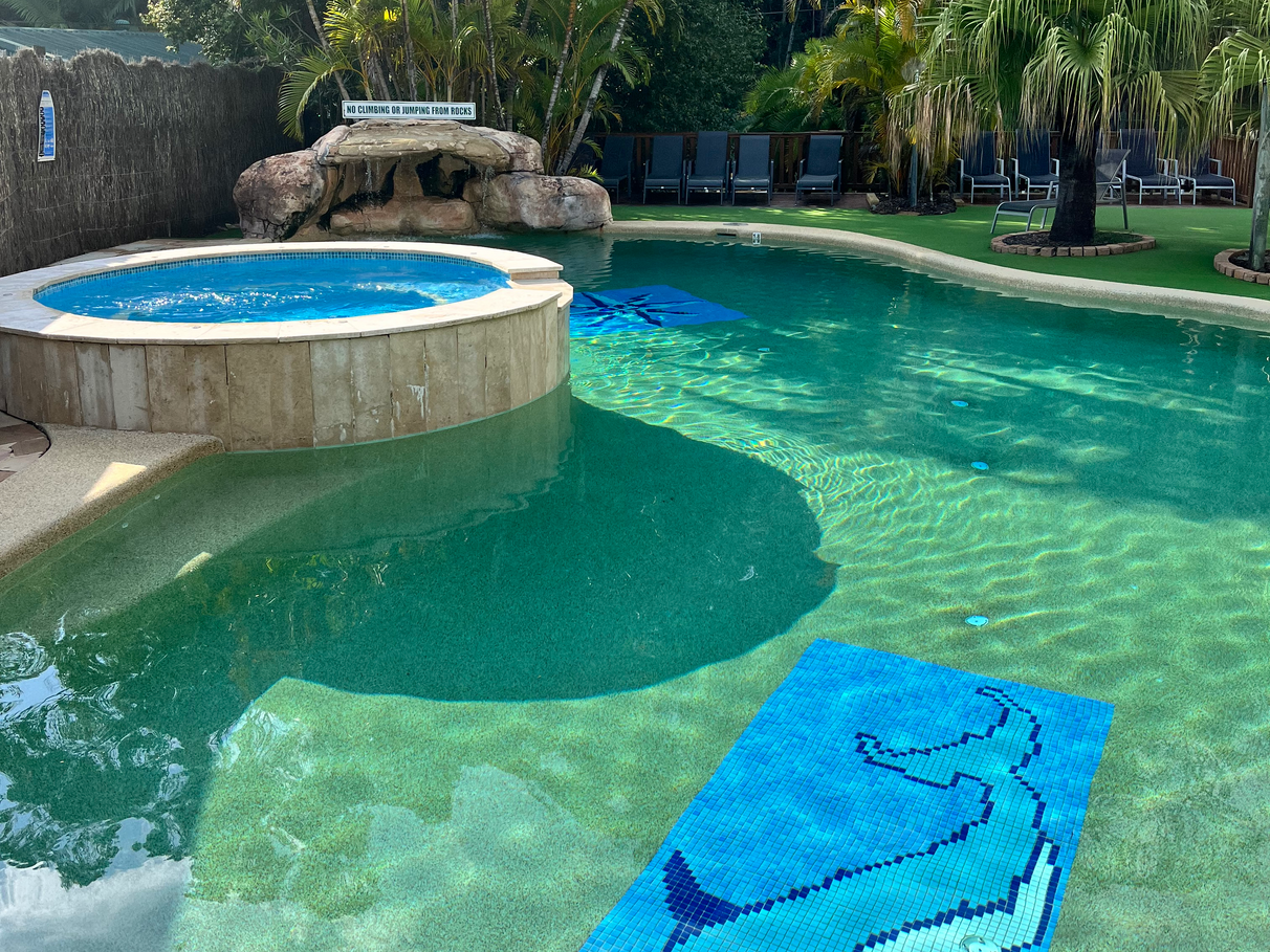 Situated close to pools and barbeque area. Only minutes’ drive or short walk to beaches, lake, and shops. Bus at front door.