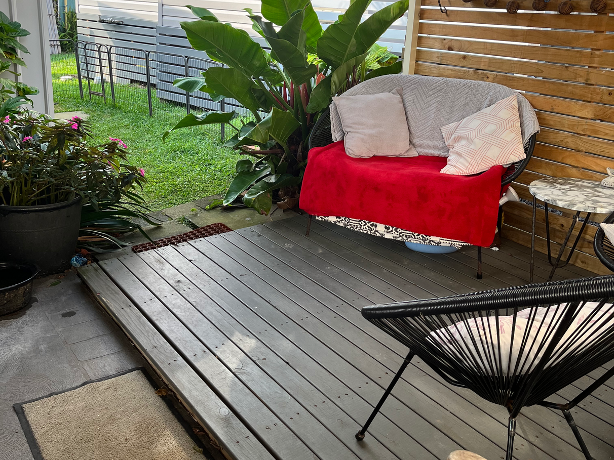 Beautifully presented outdoor sitting area with small yard attached suitable for small dogs. Single carport, established gardens.