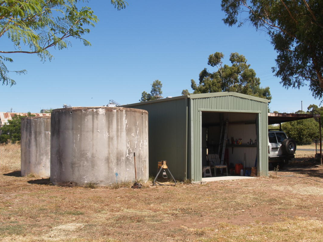 Two extra-large water storage tanks that have been turned into more storge with locking doors.