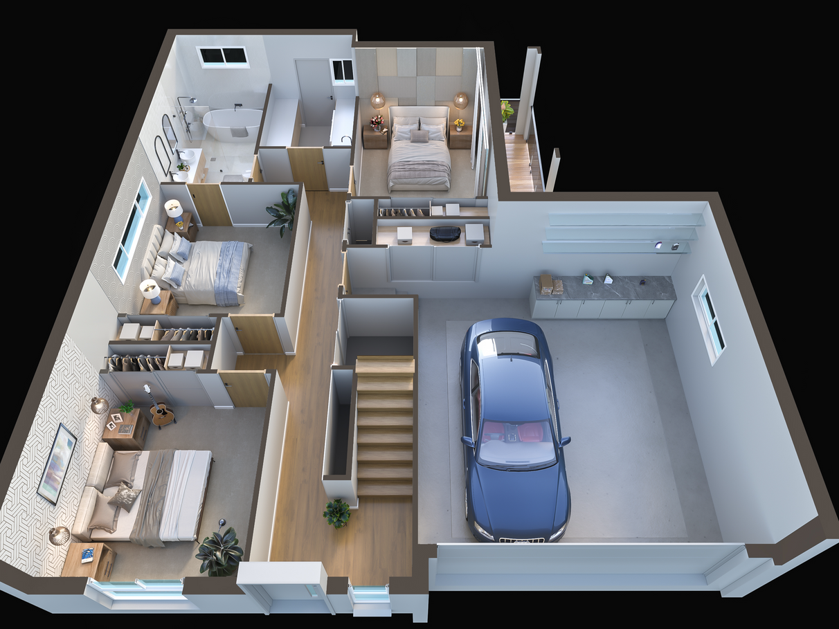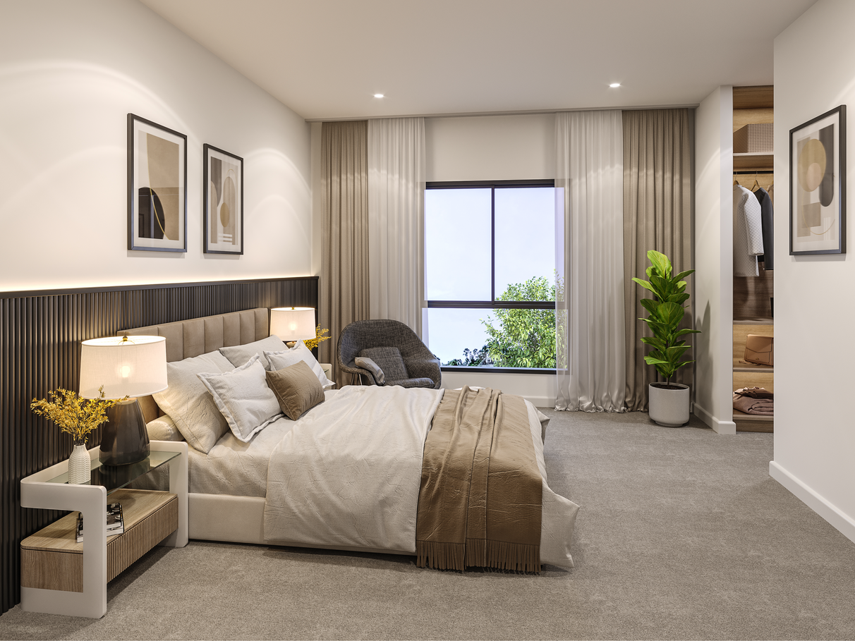 The master bedroom is a sanctuary of comfort and privacy, complete with a walk-in wardrobe and a luxurious ensuite, creating the perfect escape within your home.