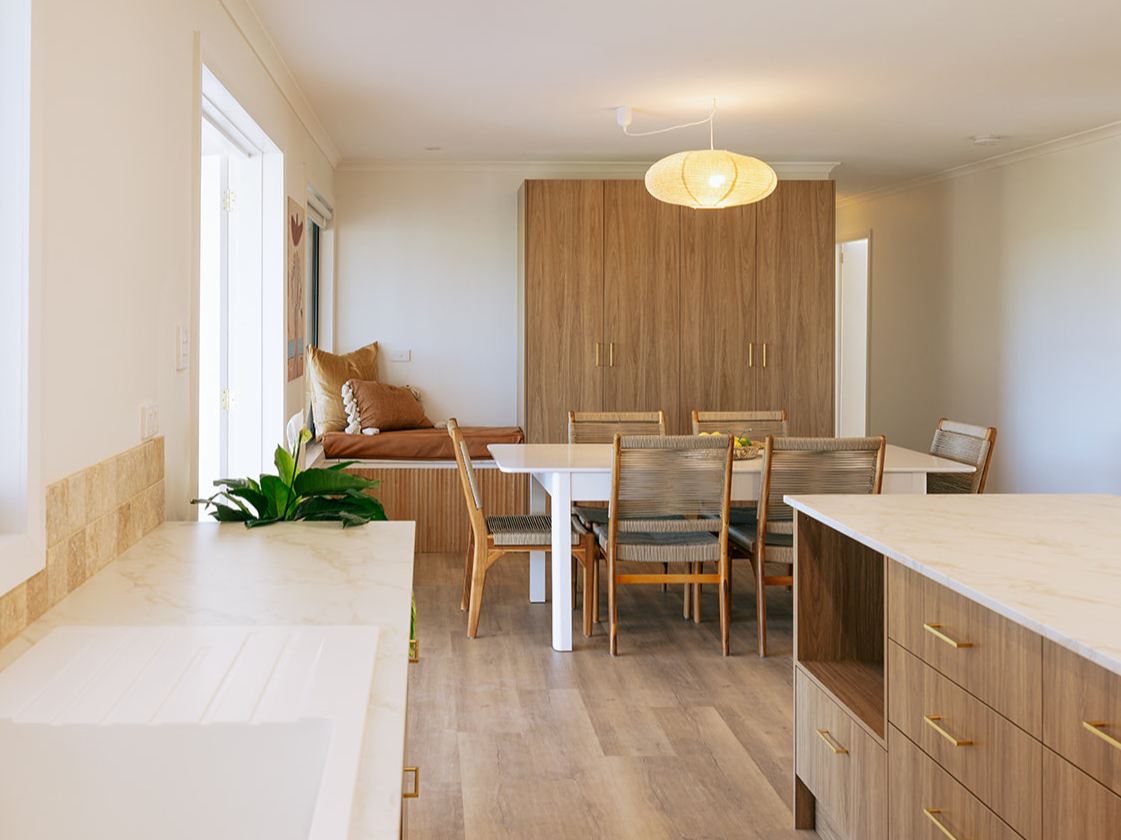 Featuring an outdoor kitchen space, and a European laundry with additional storage, this space expands the living areas exceptionally.