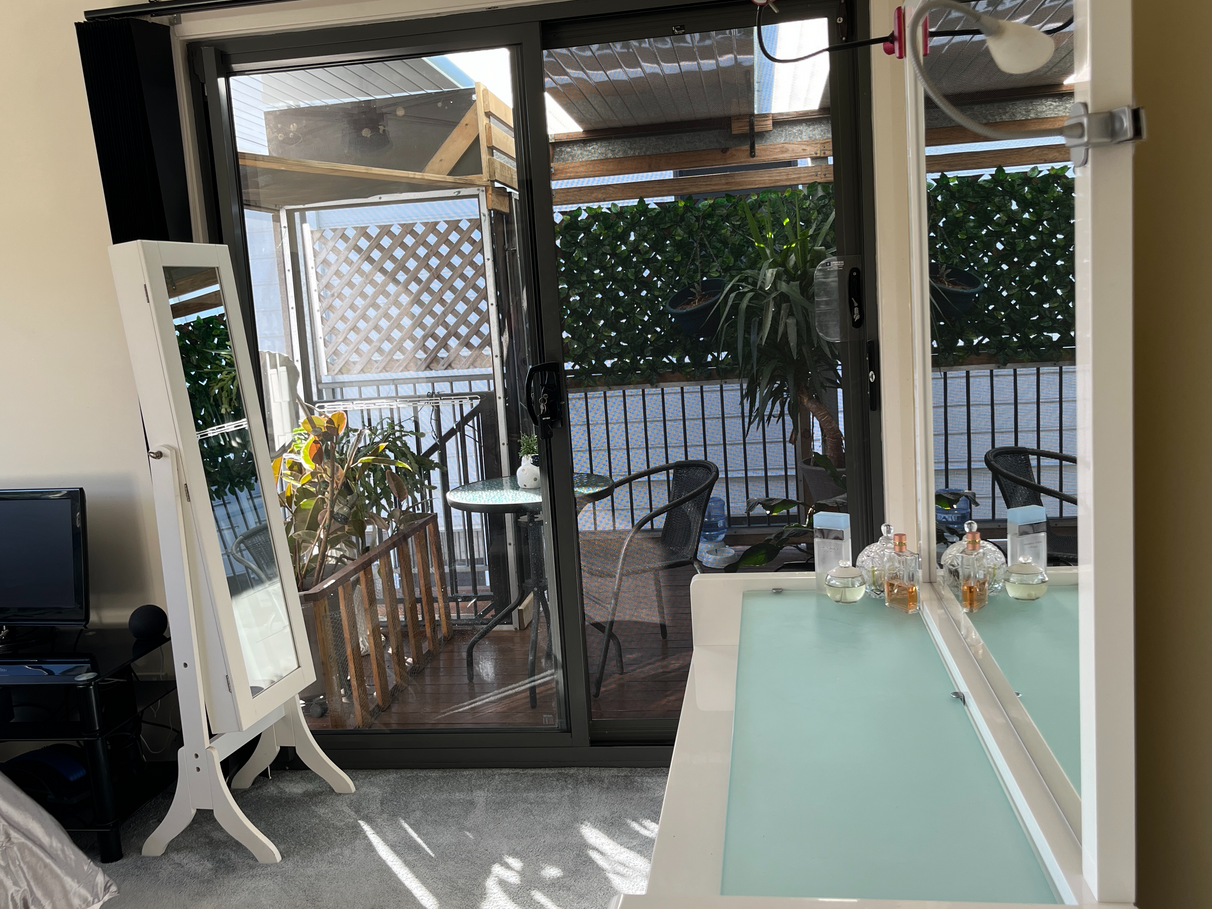 • Kitchen, bathroom, lounge and bedroom with a mirrored built-in robe