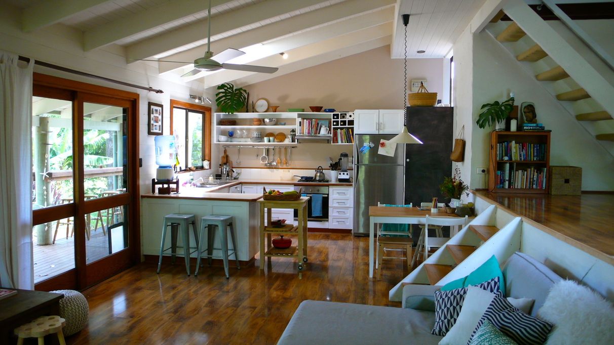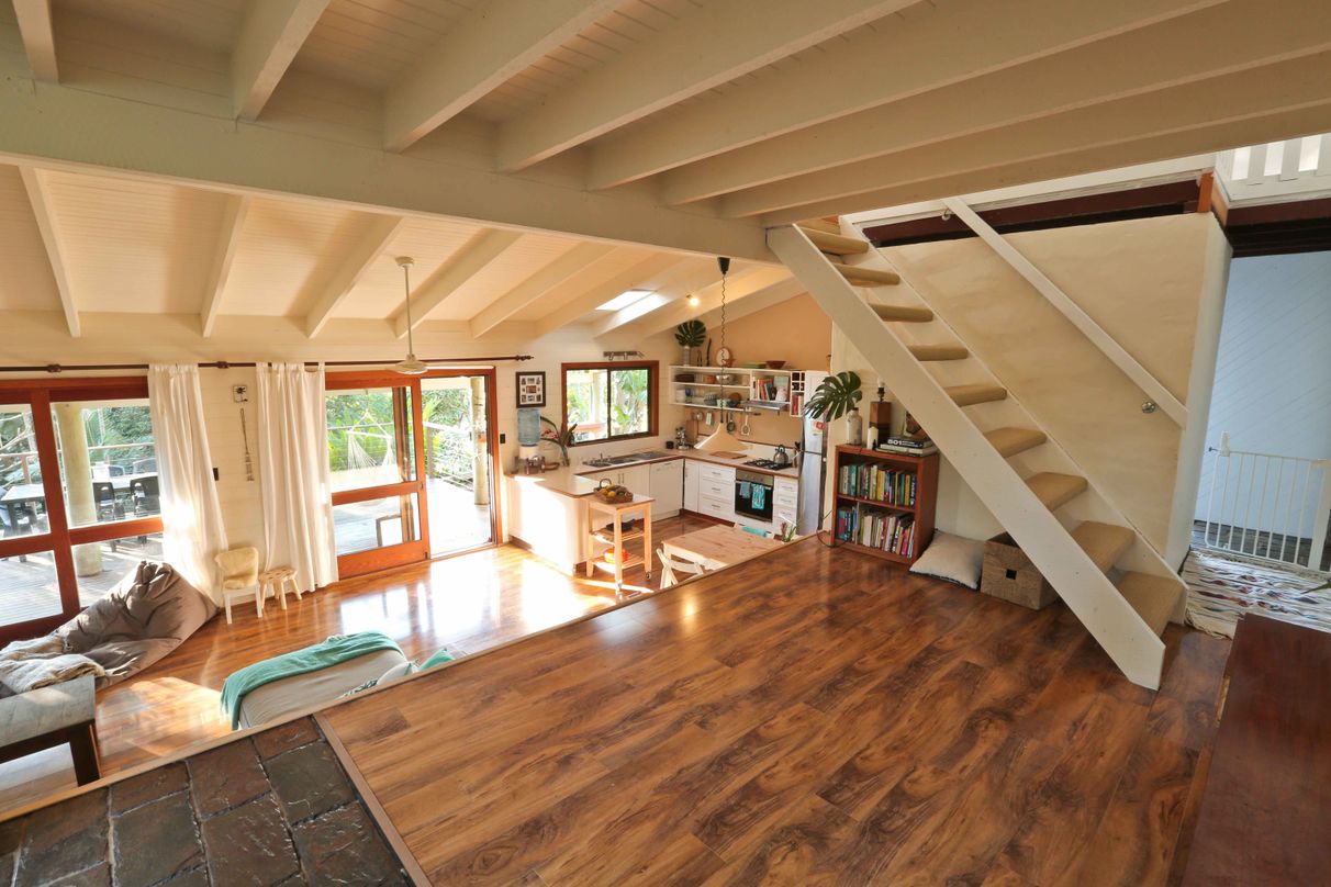 Located on the sought after Friday Hut Road, ‘The Treehouse’ is a two storey beautiful timber and brick 3 bedroom home situated on a rare ½ acre of established garden and regenerated rainforest just a few minutes from Bangalow and the popular Harvest Cafe at Newrybar.