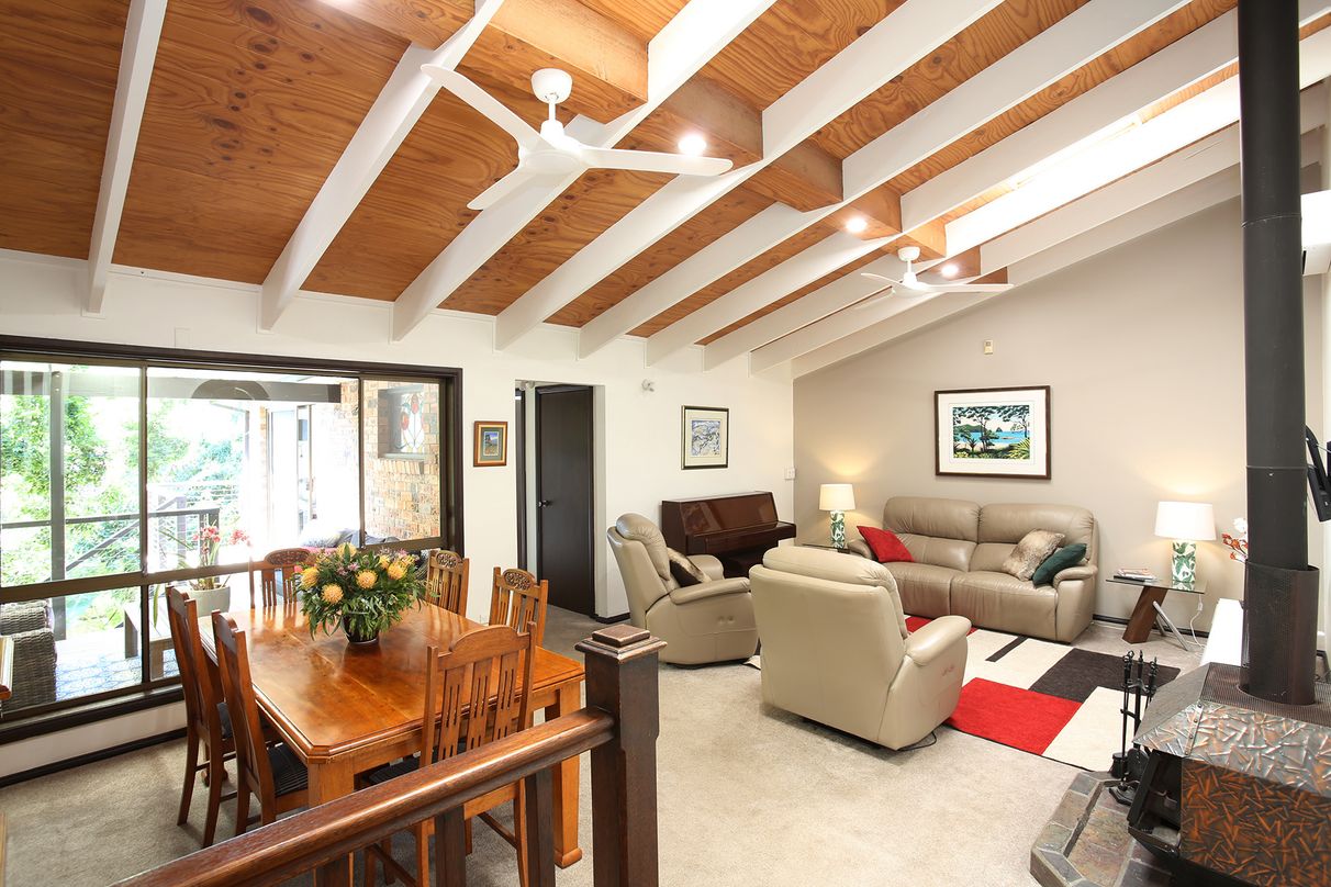 Offered for the first time in 18 years, this stylishly renovated, split level home is in a great location, with all the local amenities close by. Flooded with natural light and featuring cathedral ceilings, the home opens to a large entertaining deck and leafy views. Recent improvements to the home include a gorgeous bathroom, front deck, reverse cycle air conditioners in the living and main bedroom, the new solar hot water system and new ceiling fans. The four bedrooms are all of a good size and have built-in wardrobes; the 3rd bedroom includes a loft play space.