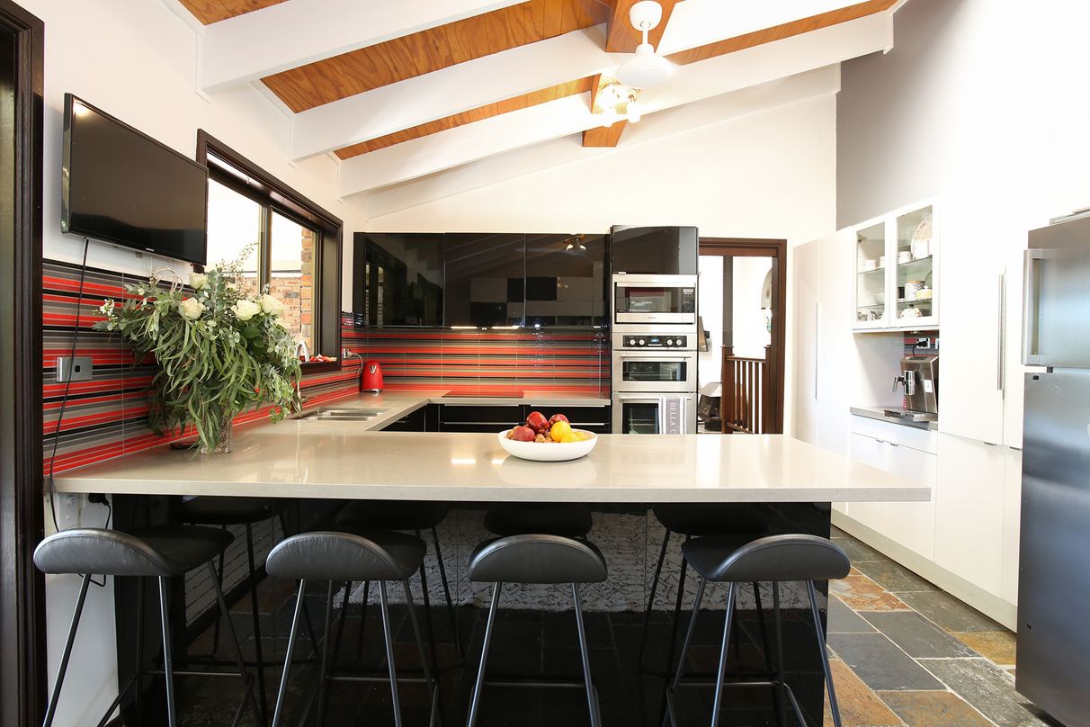 The large kitchen features a huge Caesar Stone bench, European appliances and plenty of storage. The family room includes floor to ceiling shelving, cupboards and desk space -perfect for supervising the kids’ homework. The home is surrounded by private, pretty gardens with ample storage sheds and a cubby house. Bush walking and cycling trails, gym, playground, oval and Glenbrook Swimming Pool are on your doorstep.