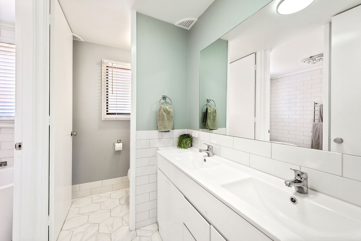 Four bedrooms - 2 of these with large built in robes and all rooms have ceiling fans. The stunning family bathroom is newly completely renovated it has a double vanity, separate toilet and large free standing bath and shower