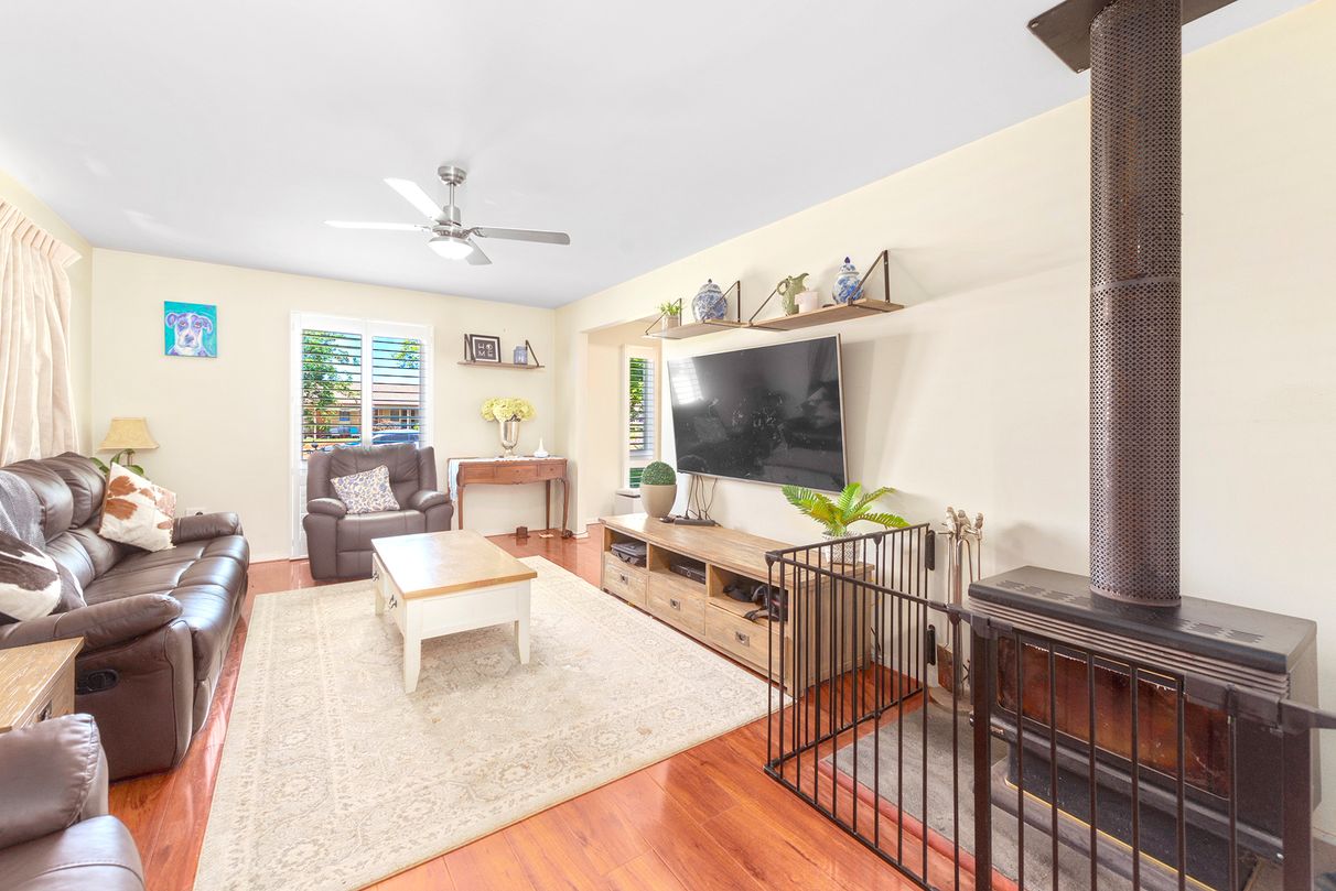 Open plan living - each area is open to each other while remaining separate, creating multiple spaces for the modern family to make use of in multiple ways. A lovely living room sporting elegant plantation shutters, wood fire heater, and a new reverse cycle air conditioning unit. Moving through to the stunning kitchen which acts as the central hub of the home. Featuring new stove and renovated granite kitchen. ample storage including a pantry, and plenty of lovely natural light. It opens through to the family meals area, complete with a stylish feature light, which opens out through glass sliders to the side yard. Peeling off to an internal laundry with plenty of extra storage space.
