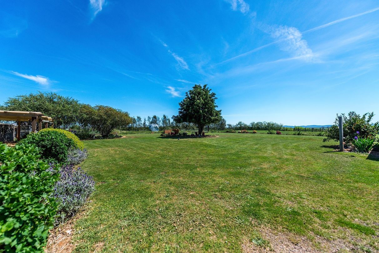 The beautifully landscaped gardens, will capture your heart; including almond, cherry, mulberry, nectarine, plum, bayleaf and figs trees as well as many other berry varieties, PLUS a vegetable patch and green house with enough land and water to establish your own market garden!