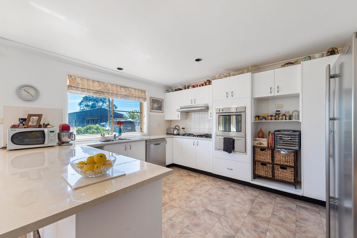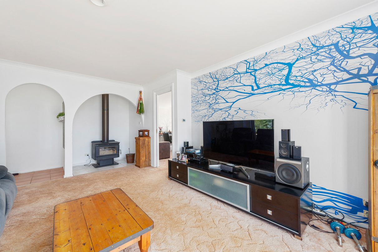 The spacious, light filled kitchen comes equipped with stainless steel appliances, a long bench which doubles as a breakfast bar, ample storage and plenty of room to move. Overlooking a dining area which seamlessly opens through glass sliding doors out to the peaceful, outdoor entertaining area. Paved and offering a covered area creating the option to entertain guests under protection in any weather, or to enjoy the sunshine with a quiet family meal. The lounge room sports a lovely wood fire heater, the perfect place to snuggle up on a cold winter's night, plus with an energy efficient gas heater is also installed.