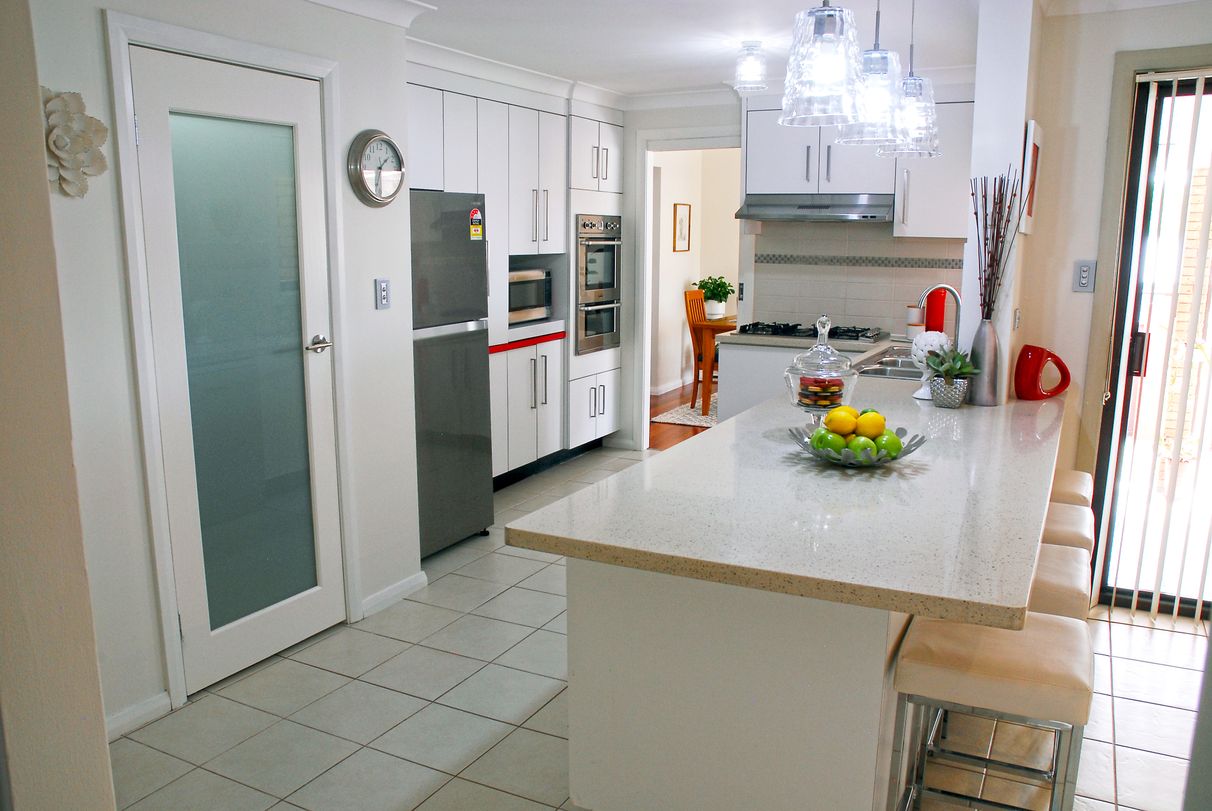 Sleek and stylish, well-appointed kitchen with stone bench tops, Ilve stainless steel appliances including 900mm gas cooktop and double oven, dishwasher, plenty of cupboard space and separate walk-in pantry.
