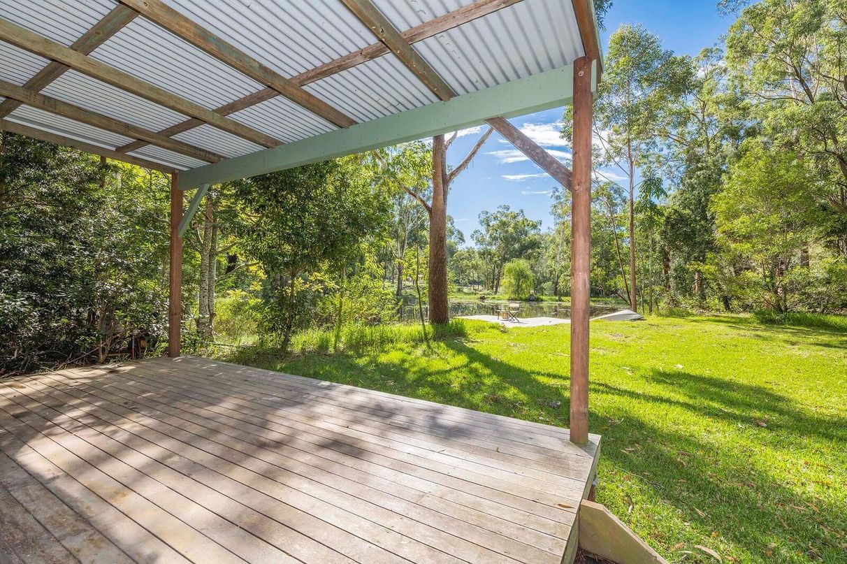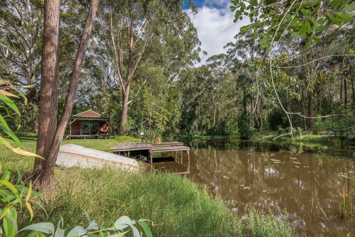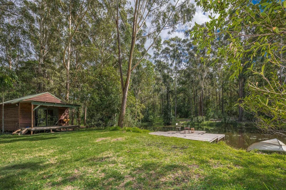 A fully lined cabin with veranda, town water and power overlooks the jetty and natural dam.