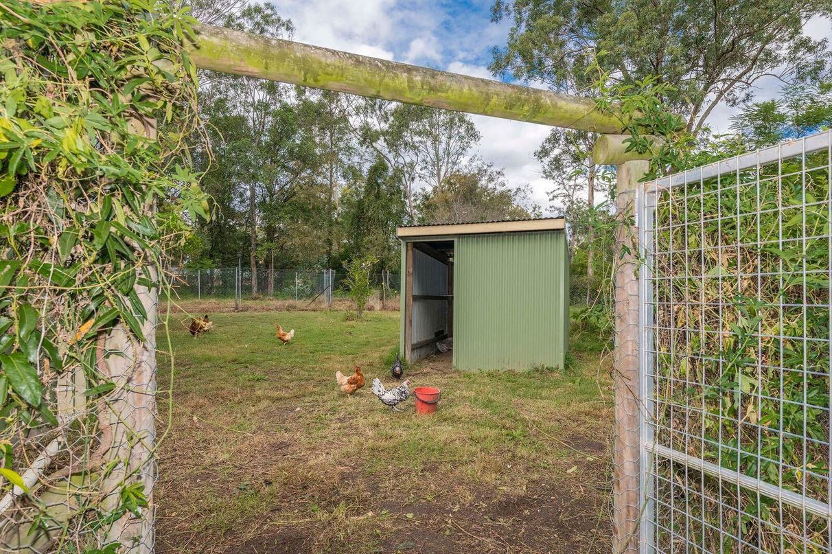 There is a large area for chooks with an orchard, lime tree, mulberry, oranges, mandarin, apple trees etc. gardens and chook house.