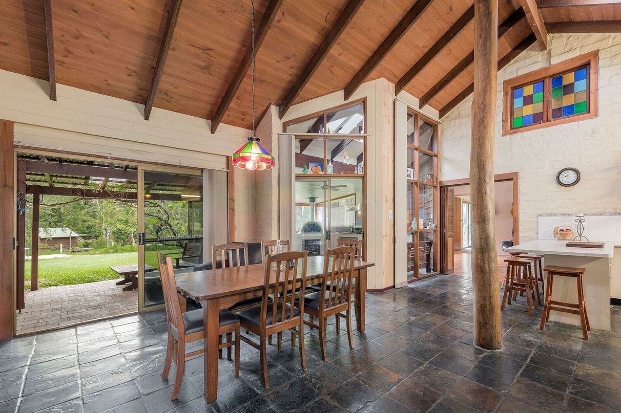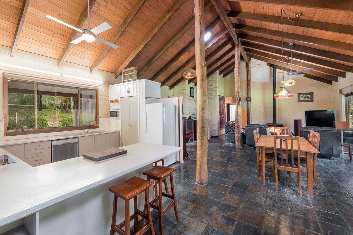 Handmade bricks and Canadian Cedar, cathedral ceilings, leadlight windows, African slate floors. This home has been a joy to live in, and will be sad to leave.